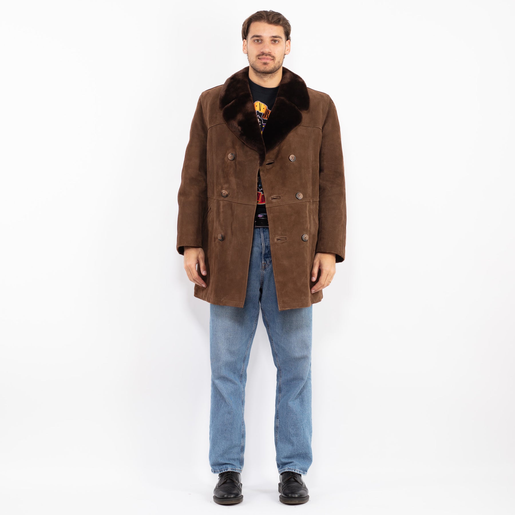 Brown Vintage 70's Men Suede Sherpa Coat in Brown Suede With Free Delivery