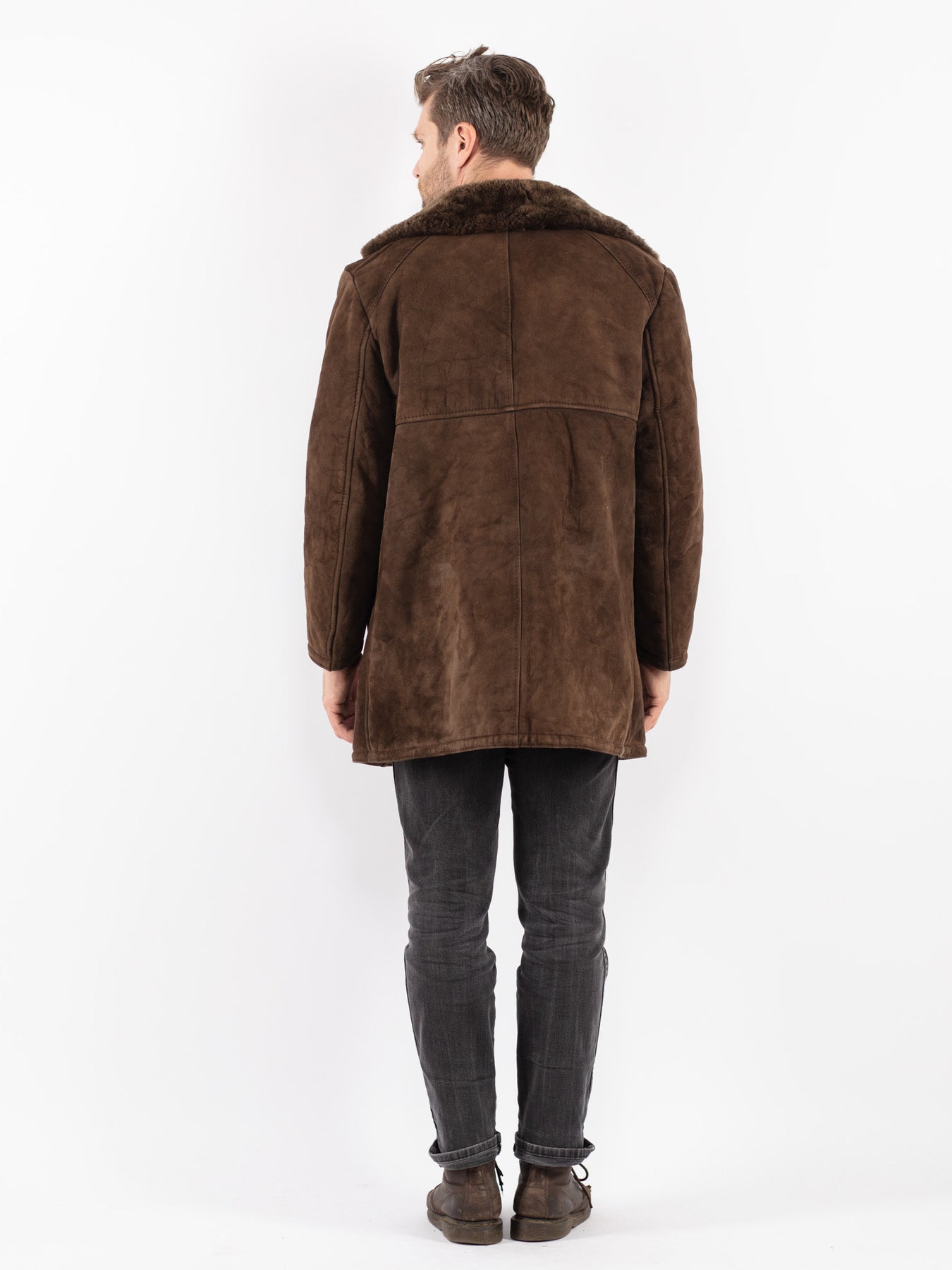 Vintage 70's Men Suede Sherpa Coat in Brown