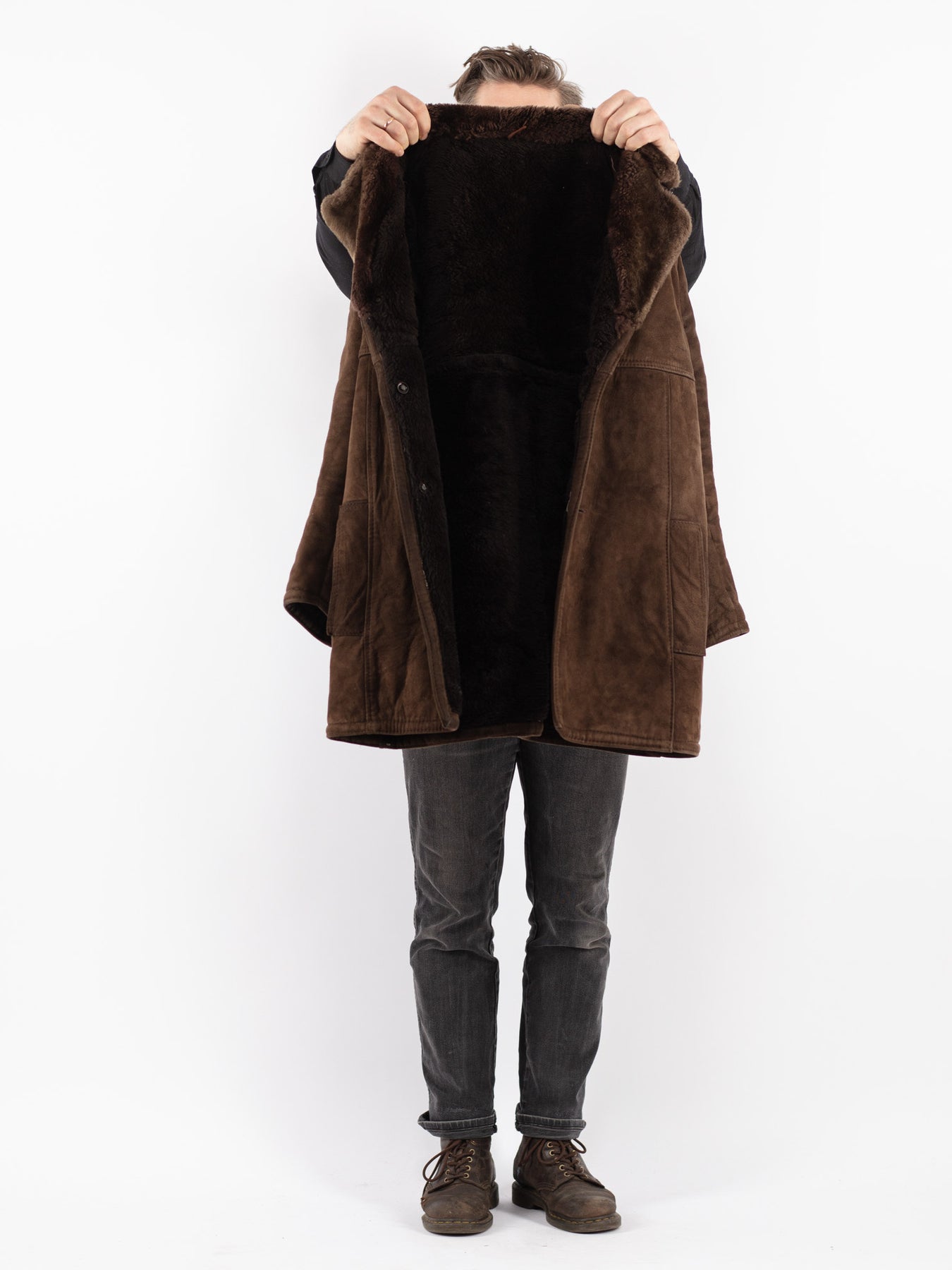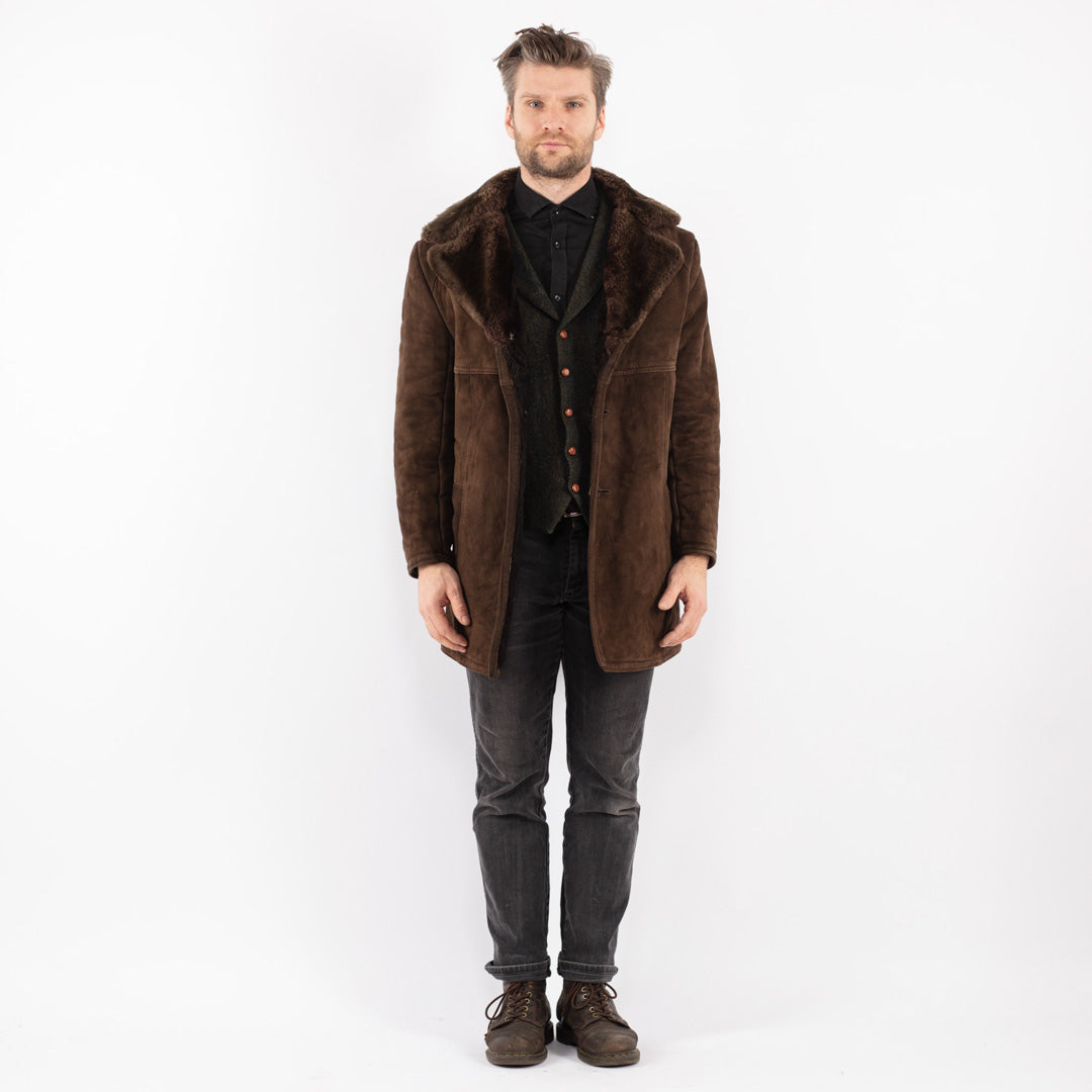 Brown Vintage 70's Men Suede Sherpa Coat in Brown Suede Sherpa With Free Delivery