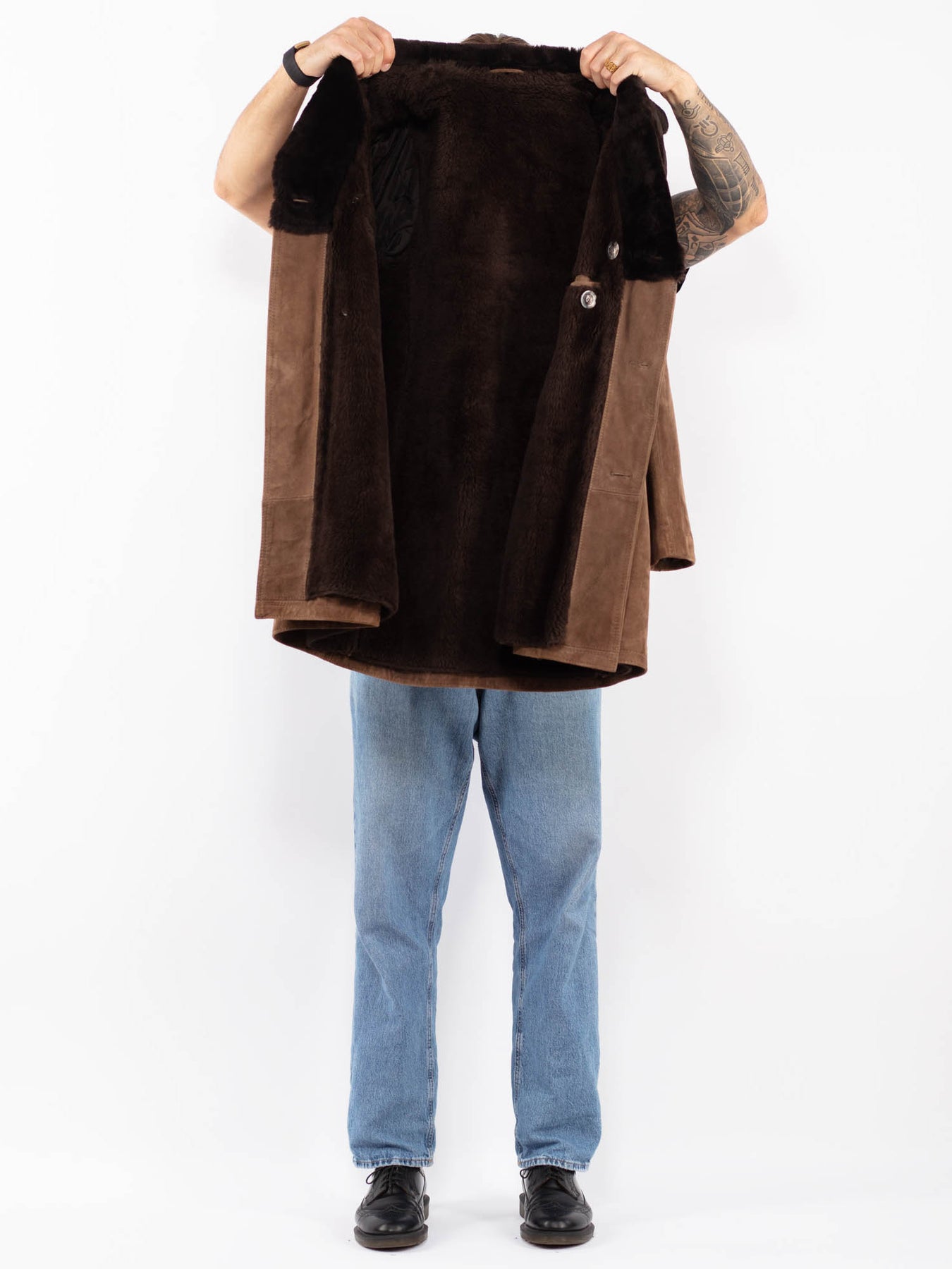 Brown Vintage 70's Men Suede Sherpa Coat in Brown With Free Delivery