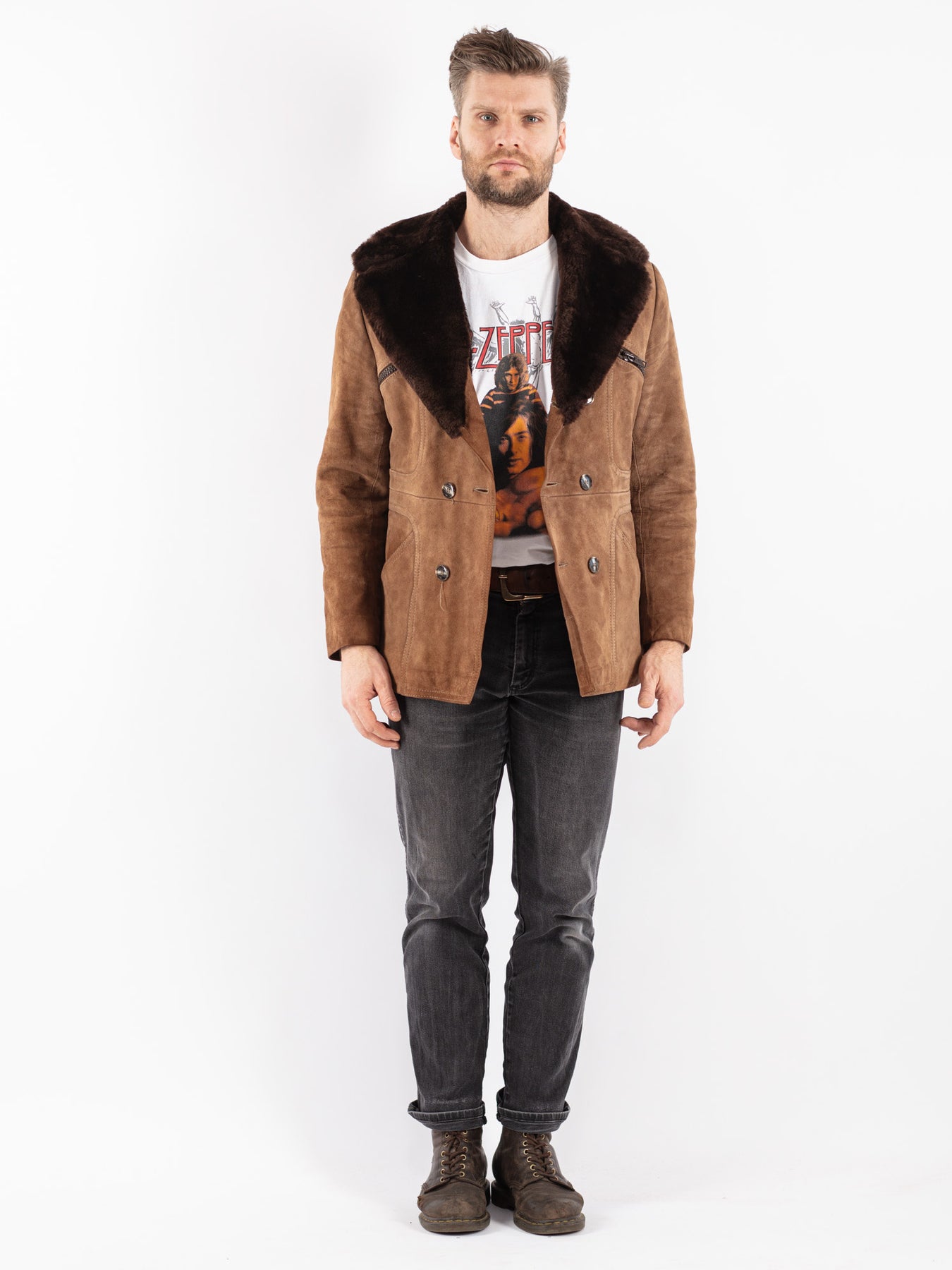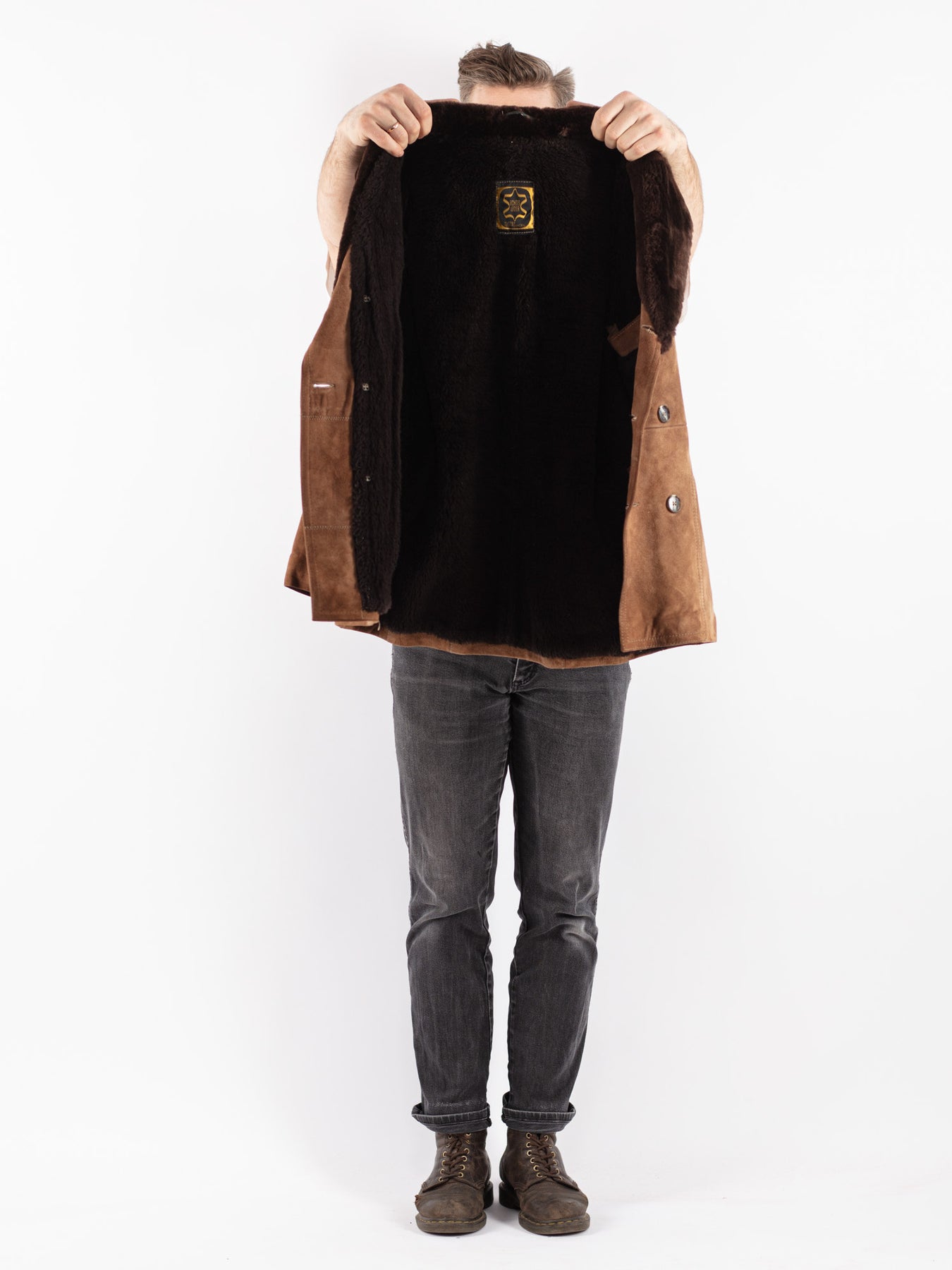 Brown Vintage 70's Men Suede Sherpa Jacket in Brown Suede Sherpa With Free Delivery