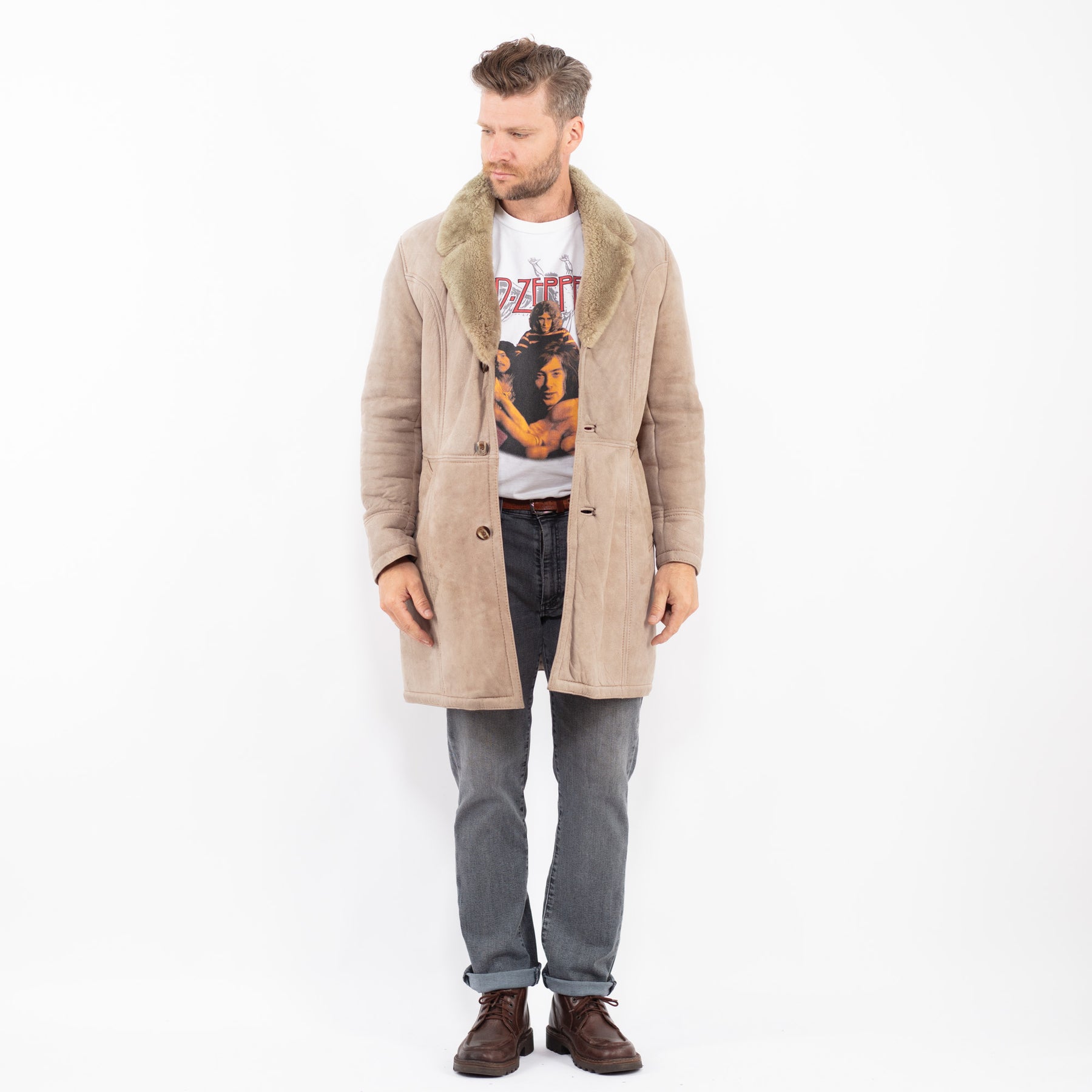 Beige Vintage 80's Men Sheepskin Coat in Beige Sheepskin With Free Delivery