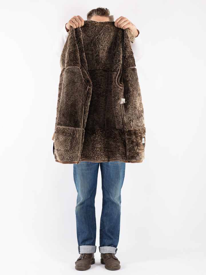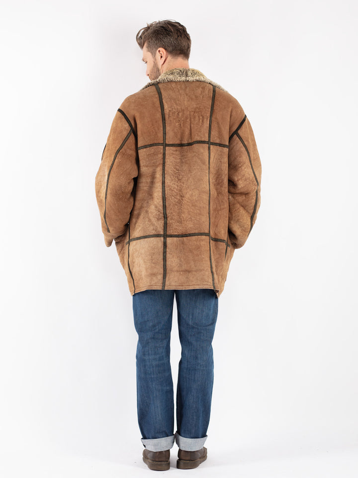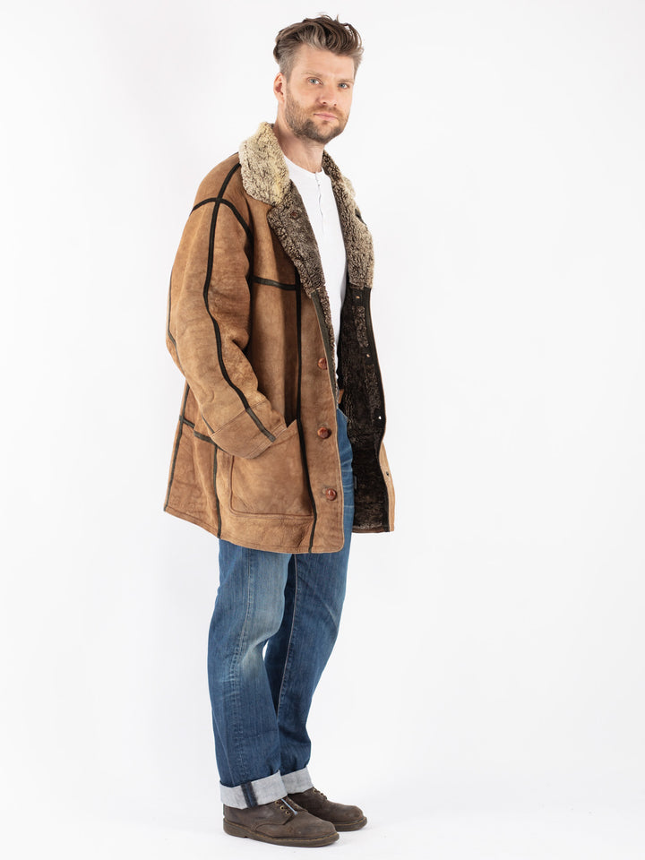 Beige Vintage 80's Men Sheepskin Coat in Beige Sheepskin With Free Delivery
