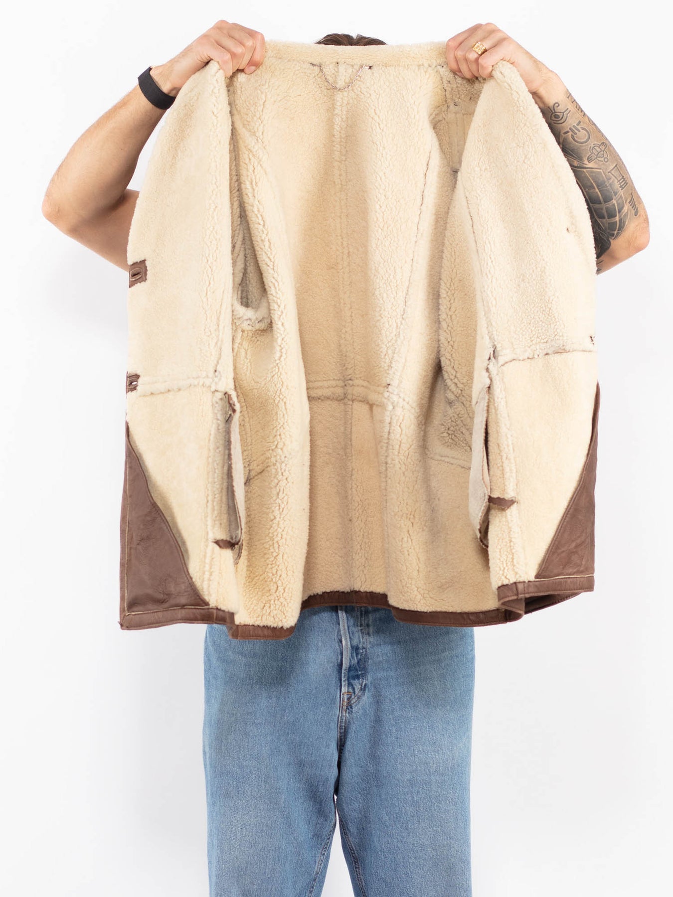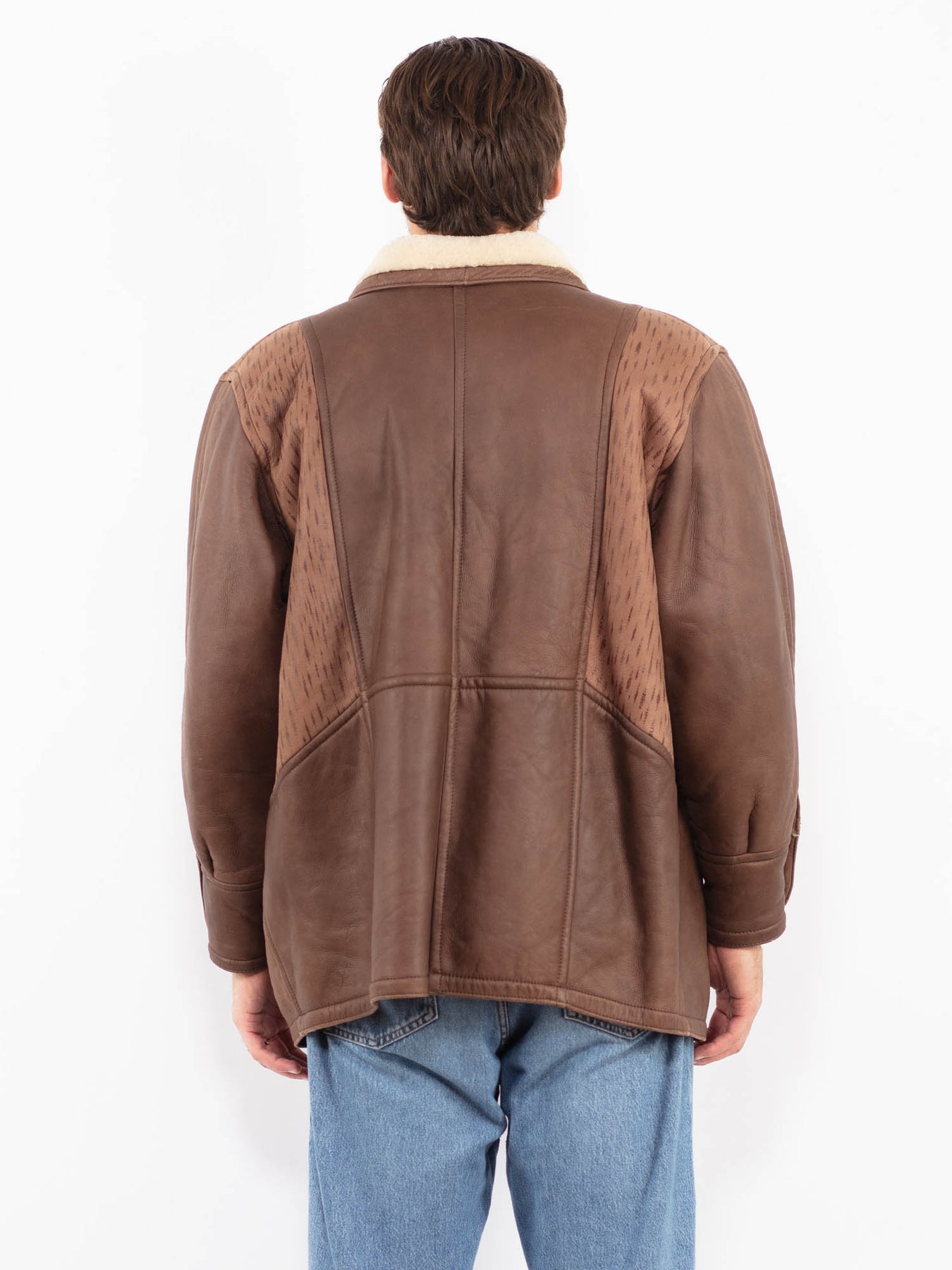 Brown Vintage 80's Men Sheepskin Coat in Brown Sheepskin With Free Delivery