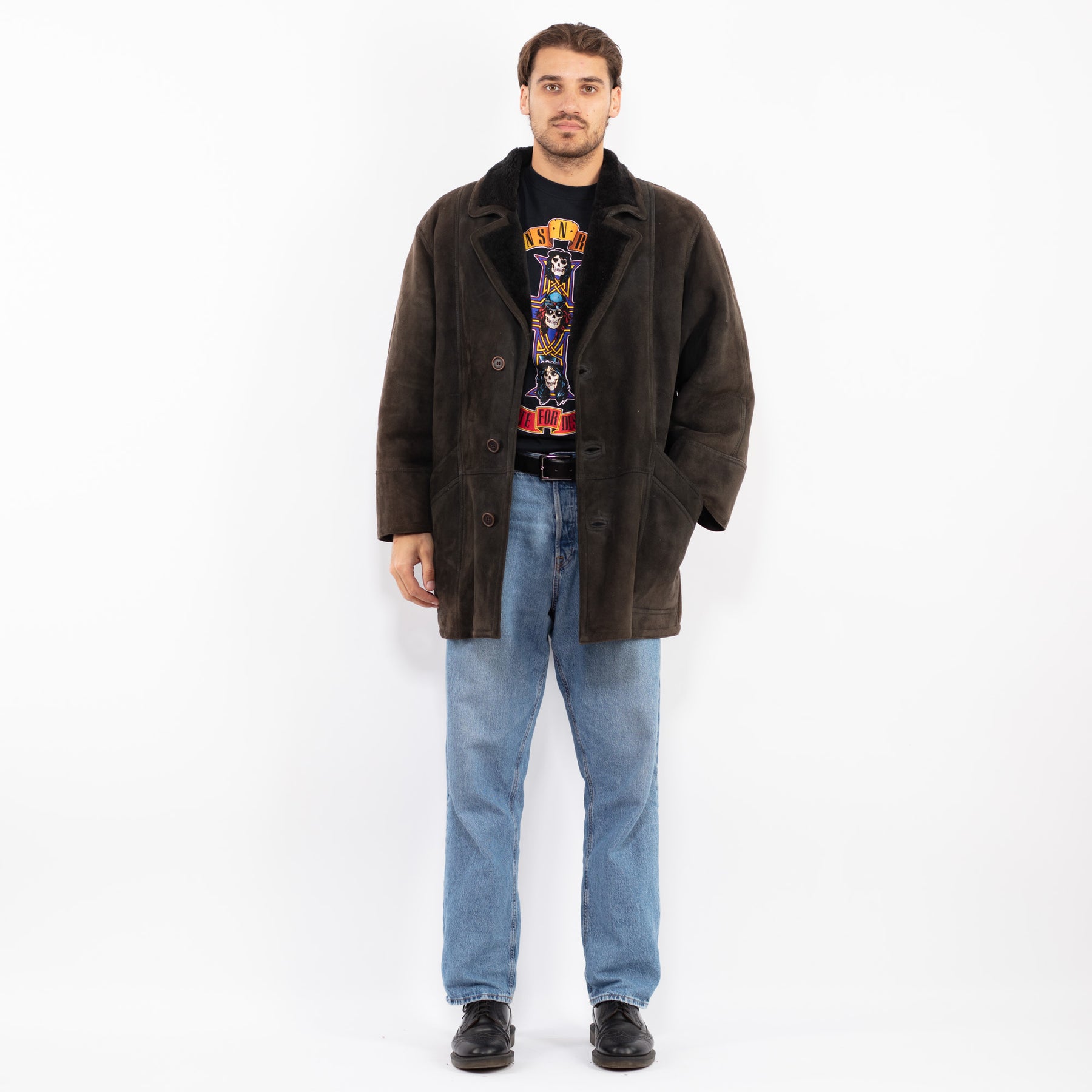 Gray Vintage 80's Men Sheepskin Coat in Gray Sheepskin With Free Delivery