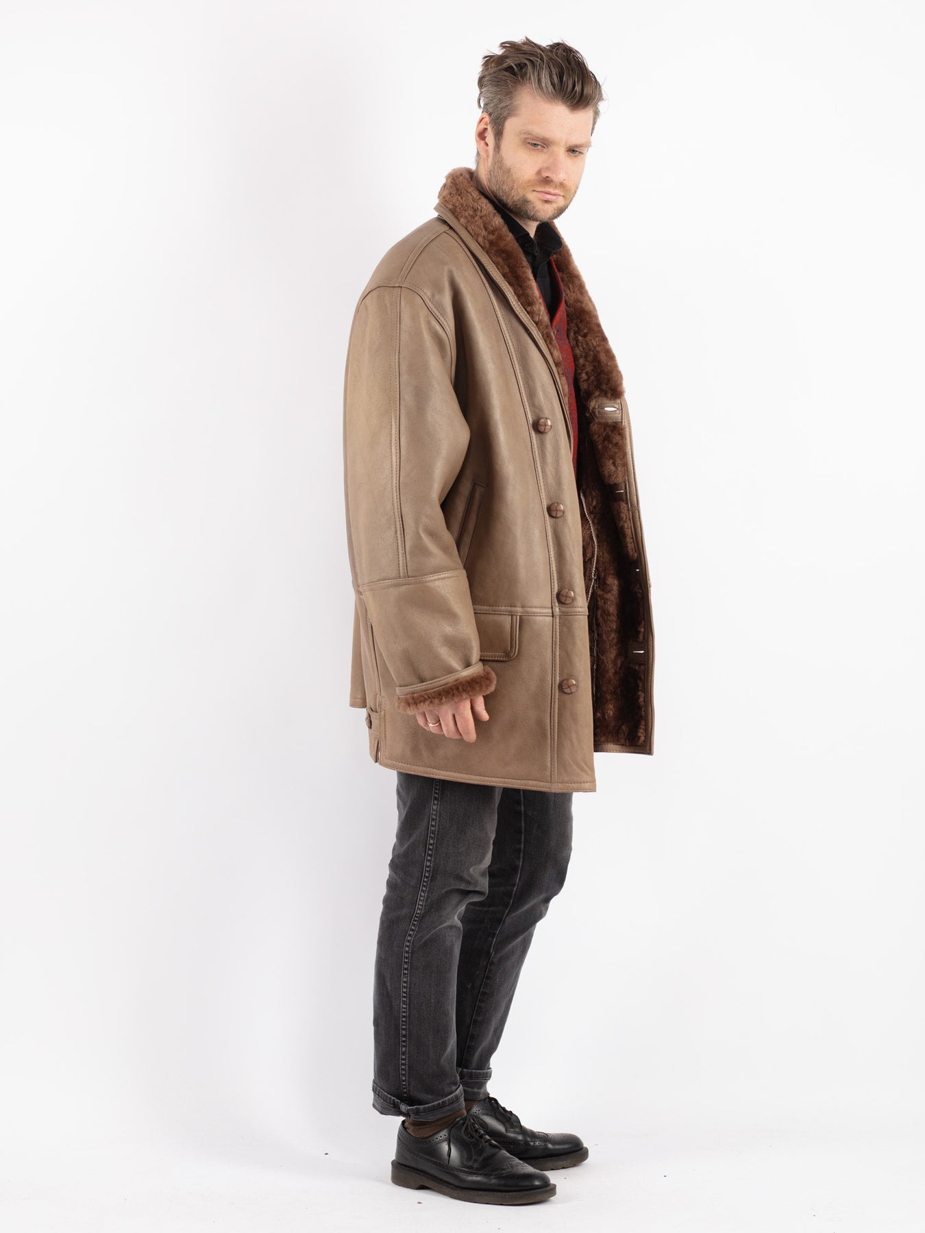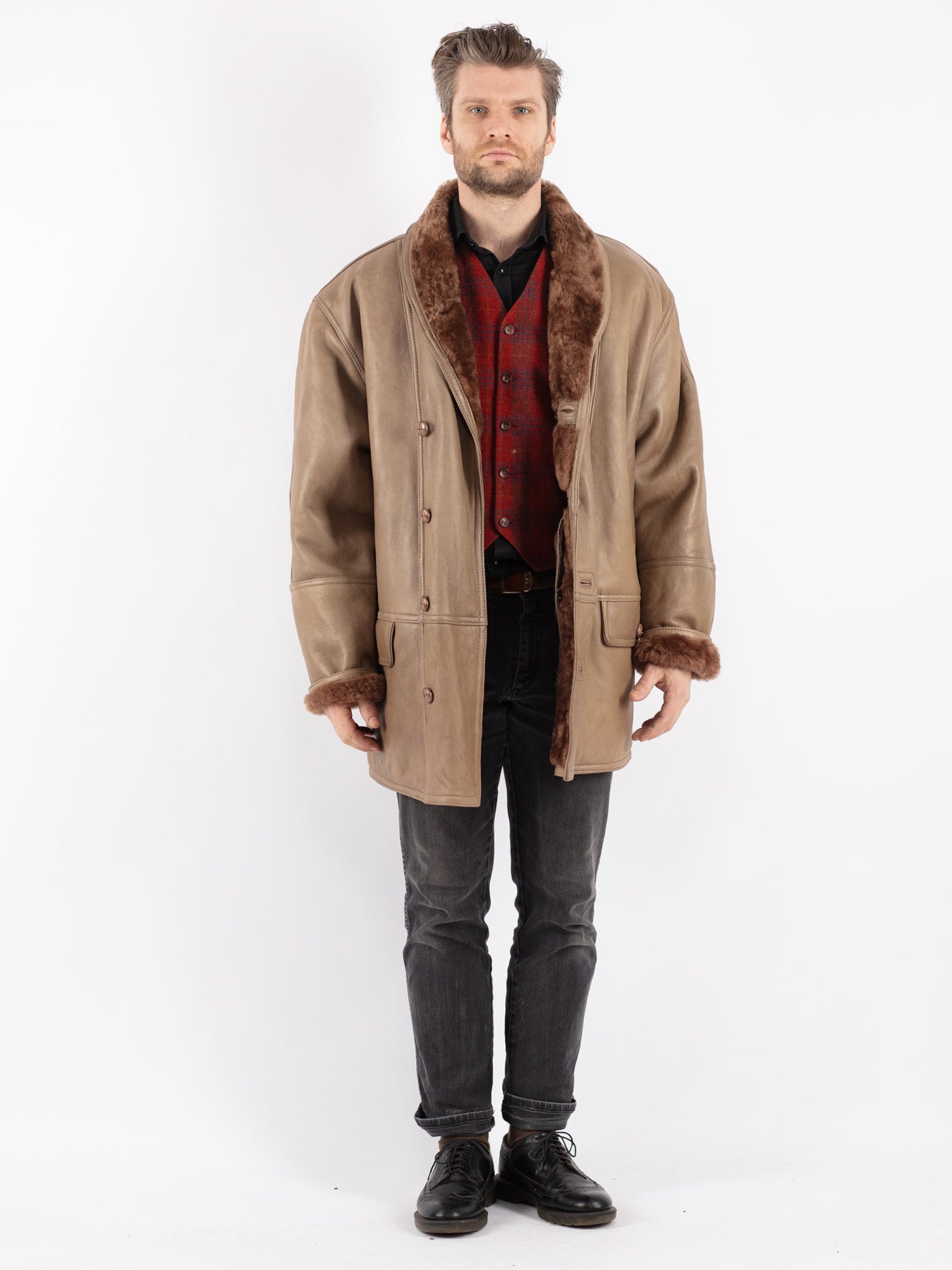 Vintage 80's Men Sheepskin Shearling Coat in Beige