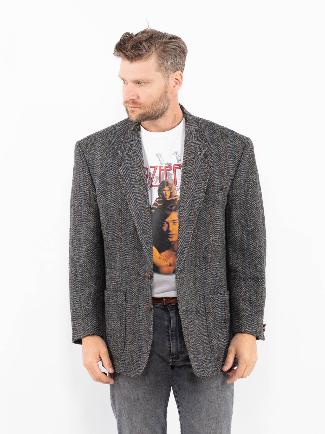 Gray Vintage 90's Men Harris Tweed Jacket in Gray With Free Delivery