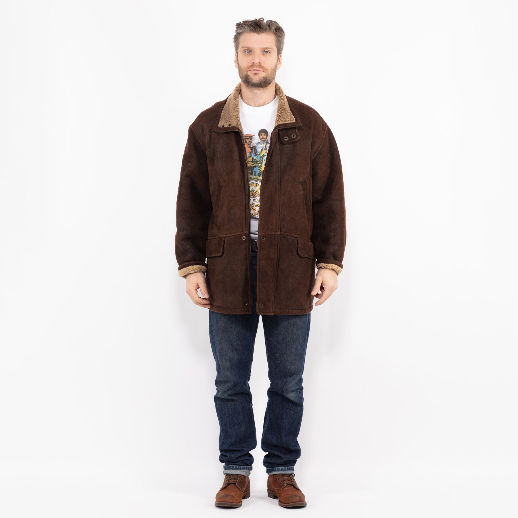 Brown Vintage 90's Men Sheepskin Coat in Brown Sheepskin With Free Delivery