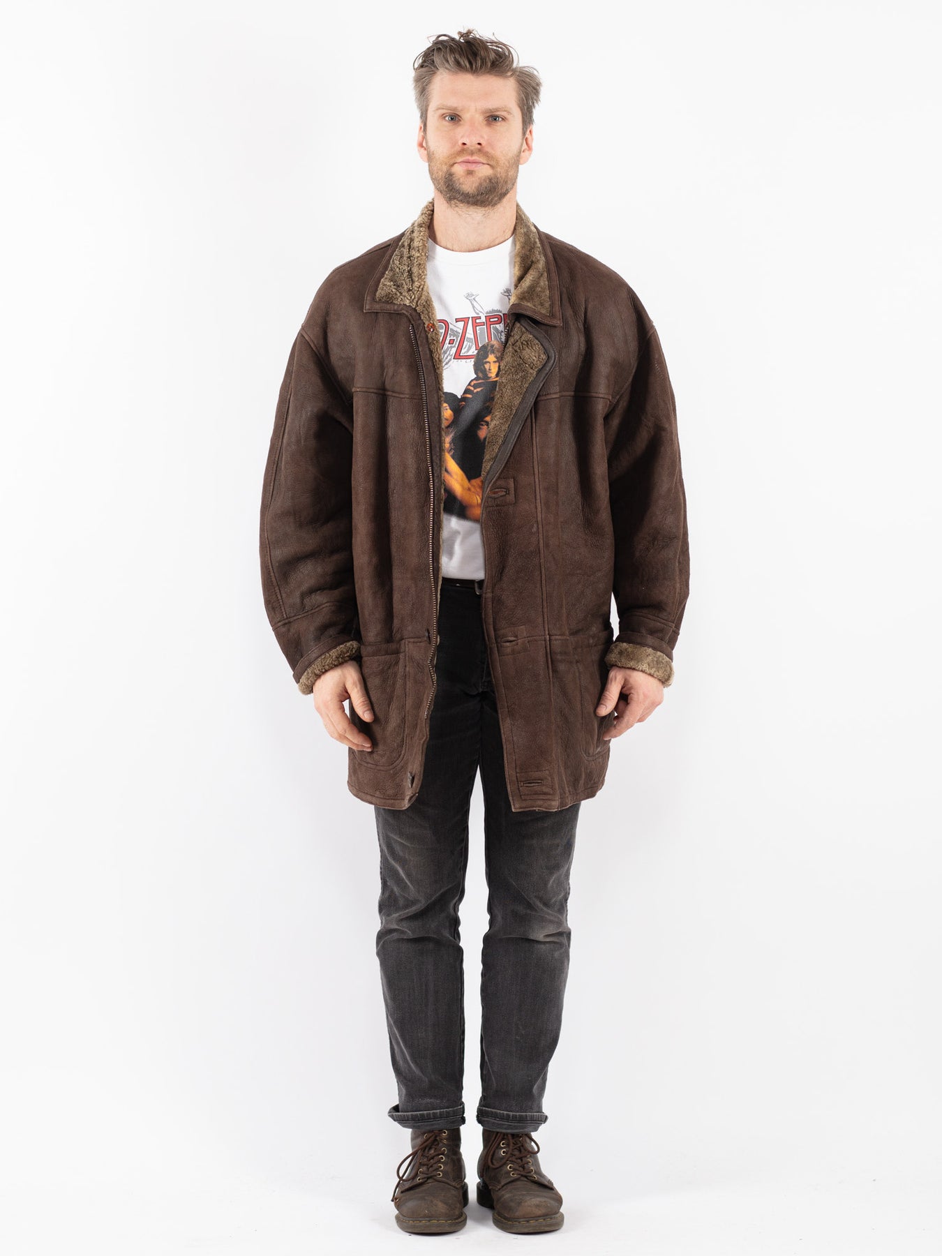 Brown Vintage 90's Men Sheepskin Coat in Brown Sheepskin With Free Delivery