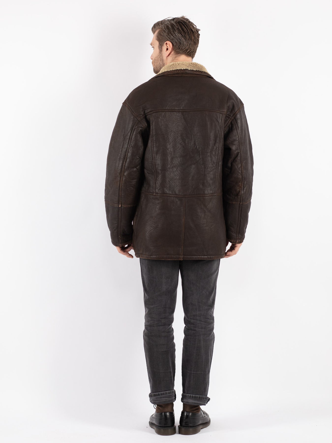 Brown Vintage 90's Men Sheepskin Coat in Brown Sheepskin With Free Delivery