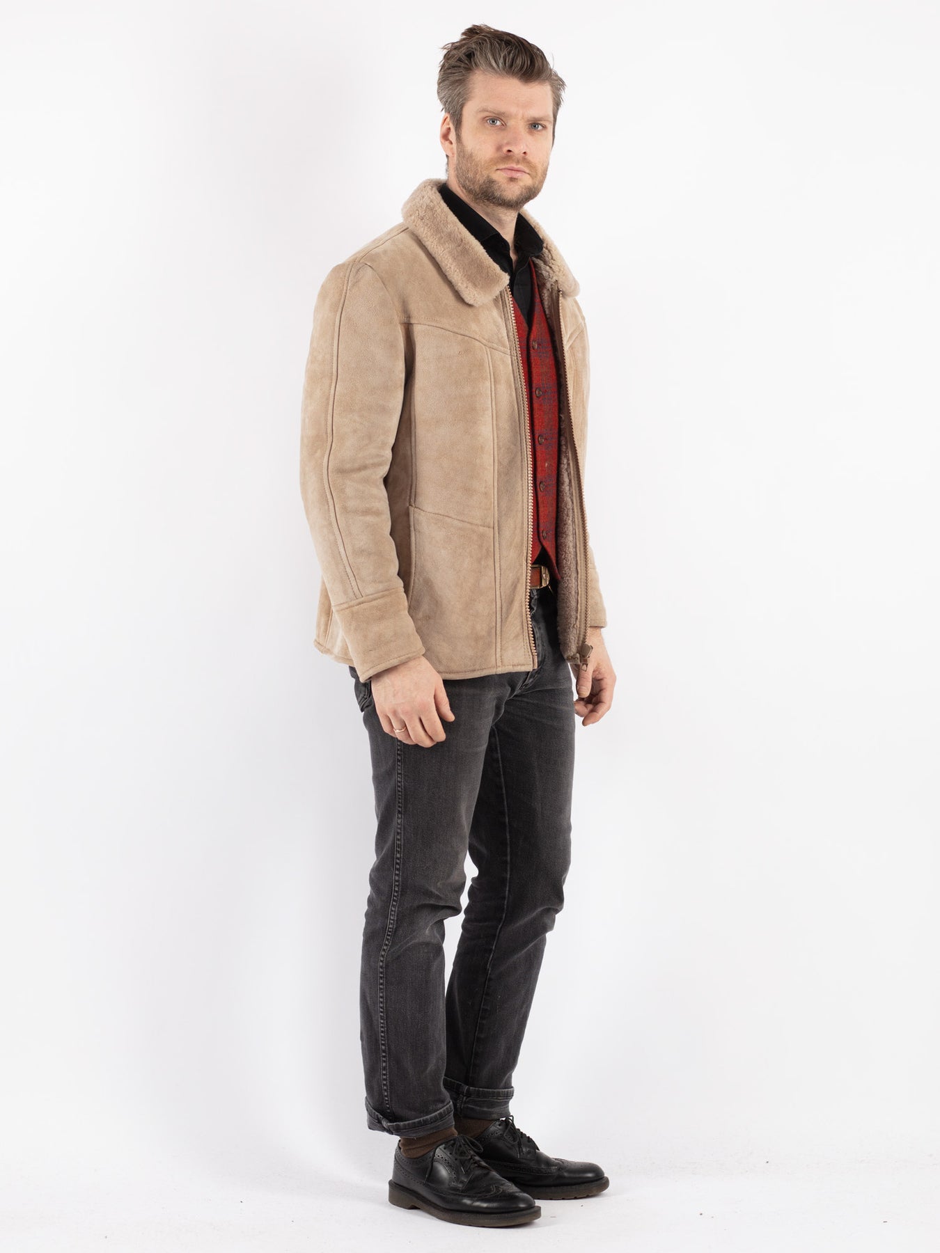 Vintage 90's Men Sheepskin Jacket in Beige