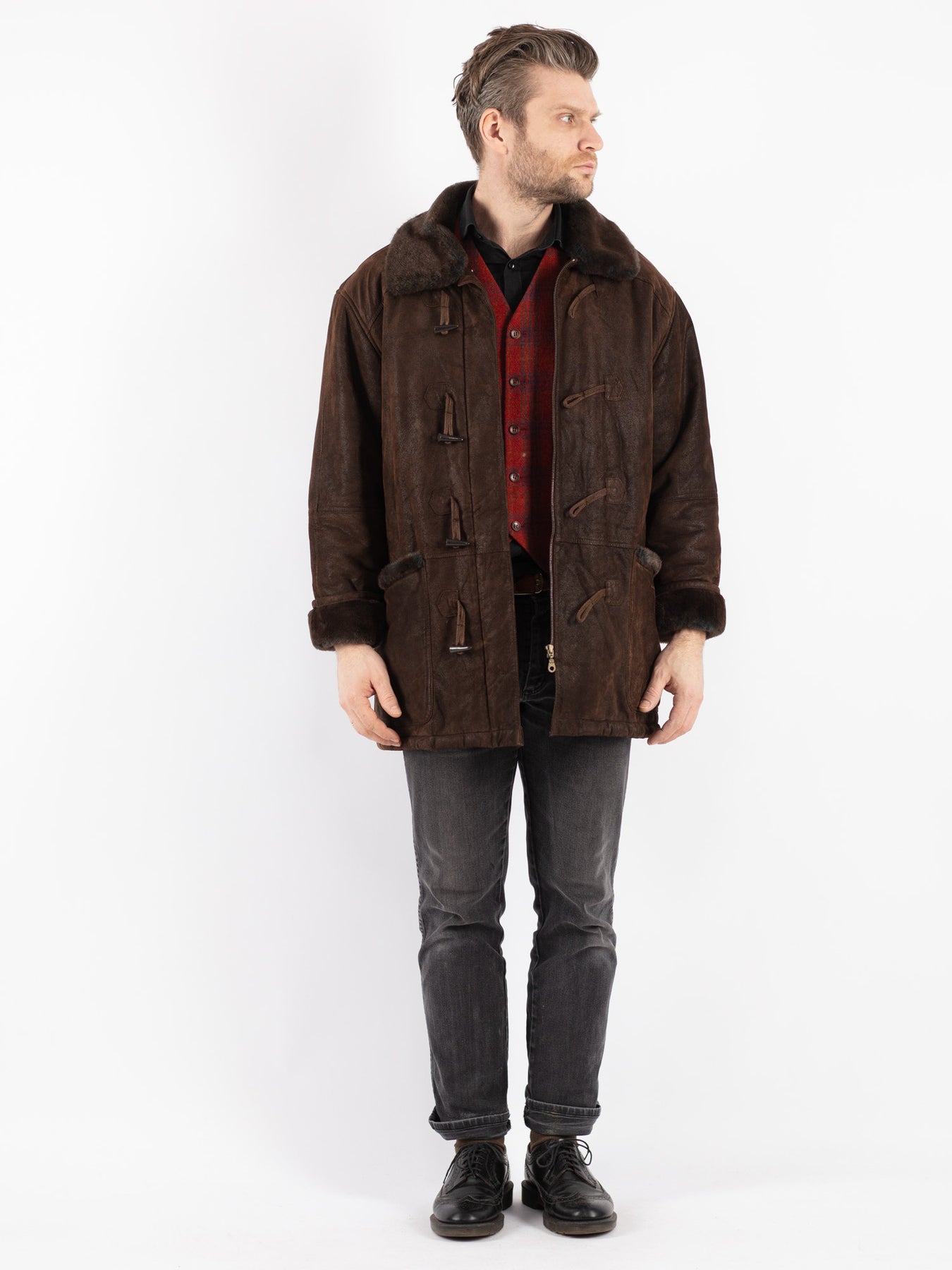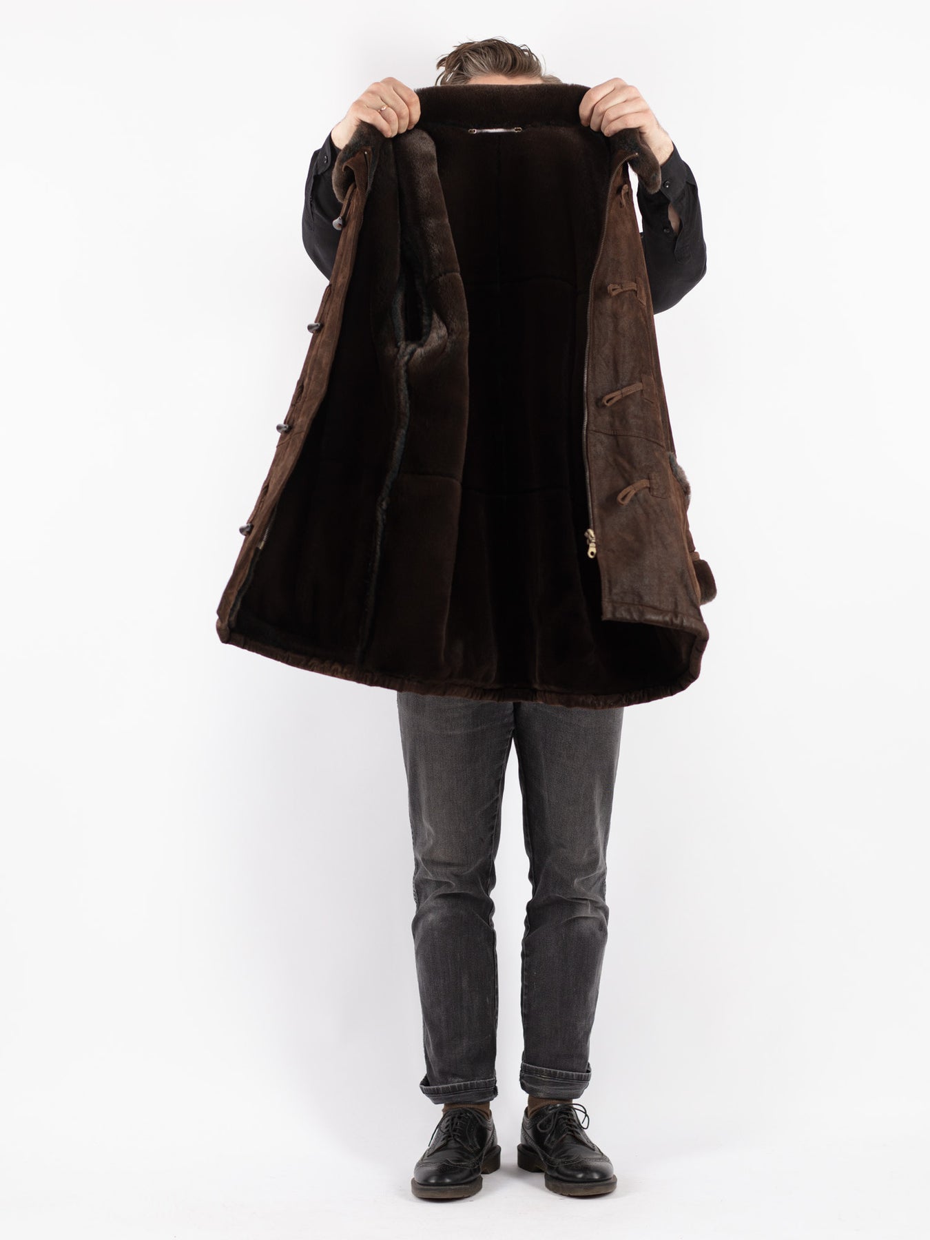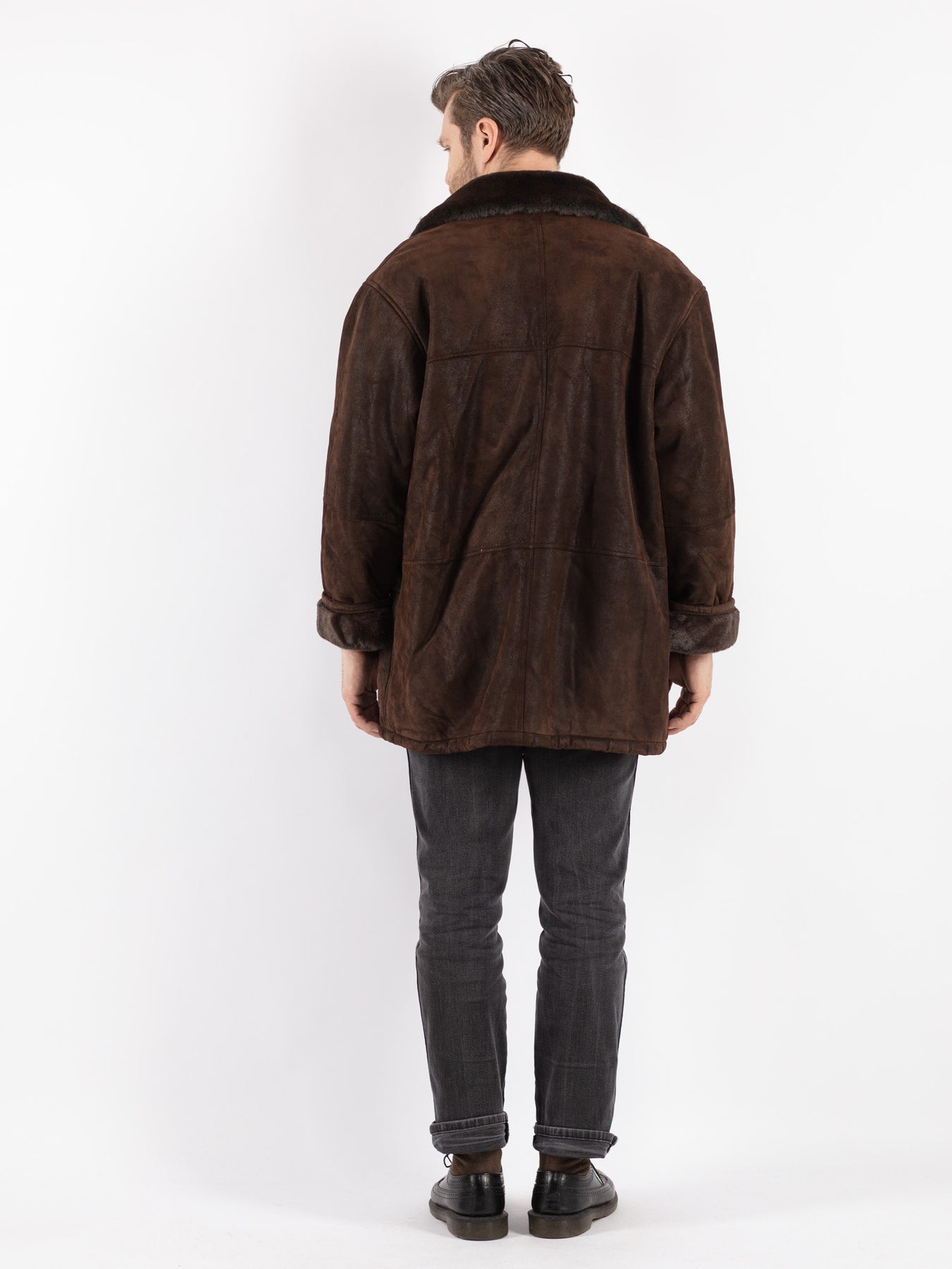 Brown Vintage 90's Men Suede Sherpa Coat in Brown Suede Sherpa With Free Delivery