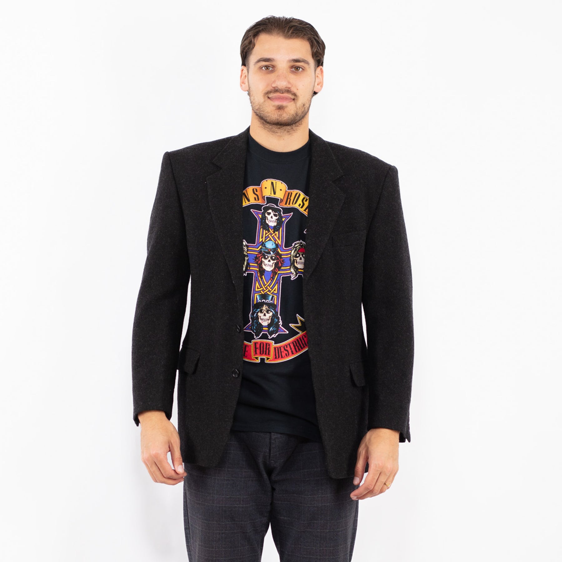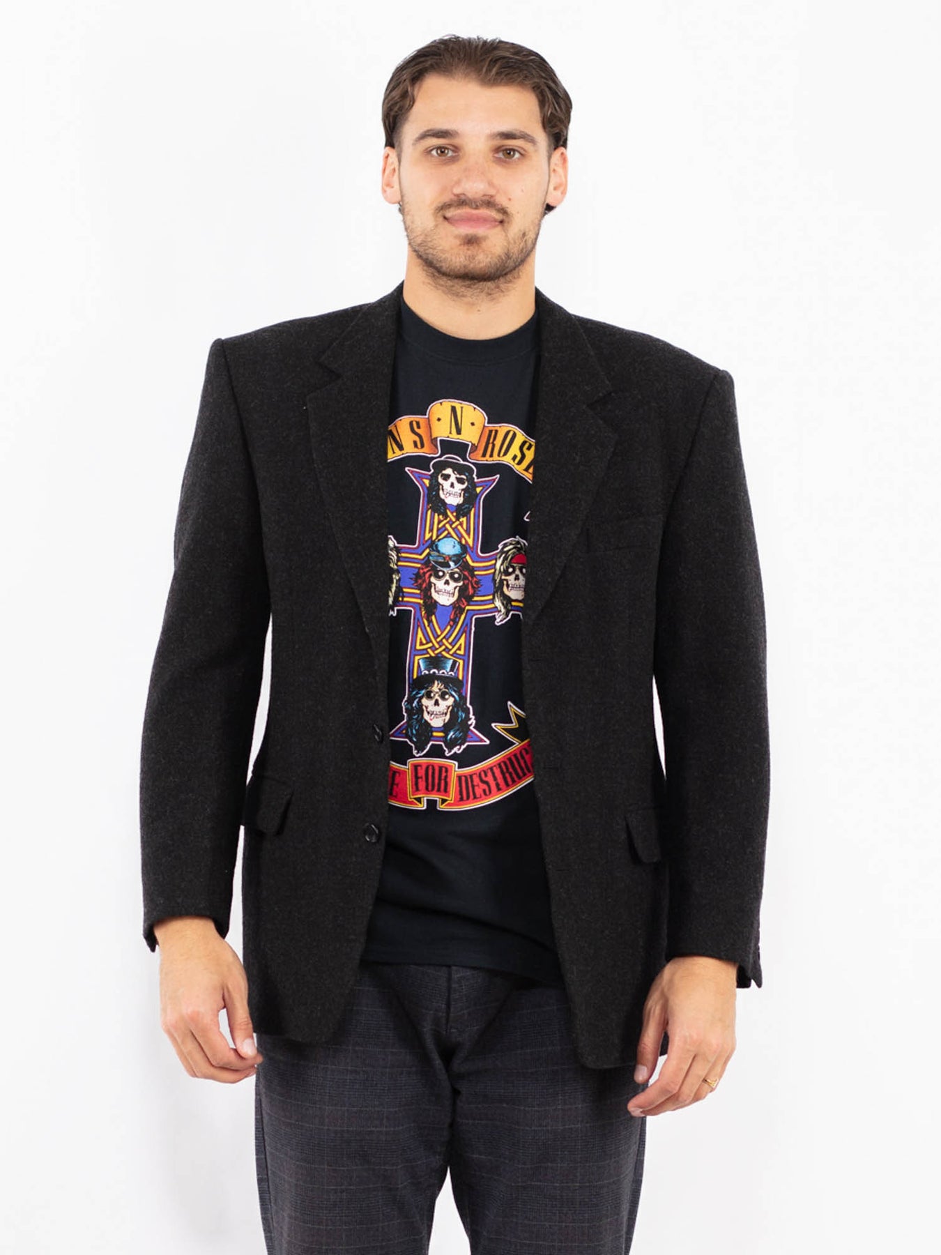 Vintage 90's Men Wool Blazer Jacket in Dark Gray