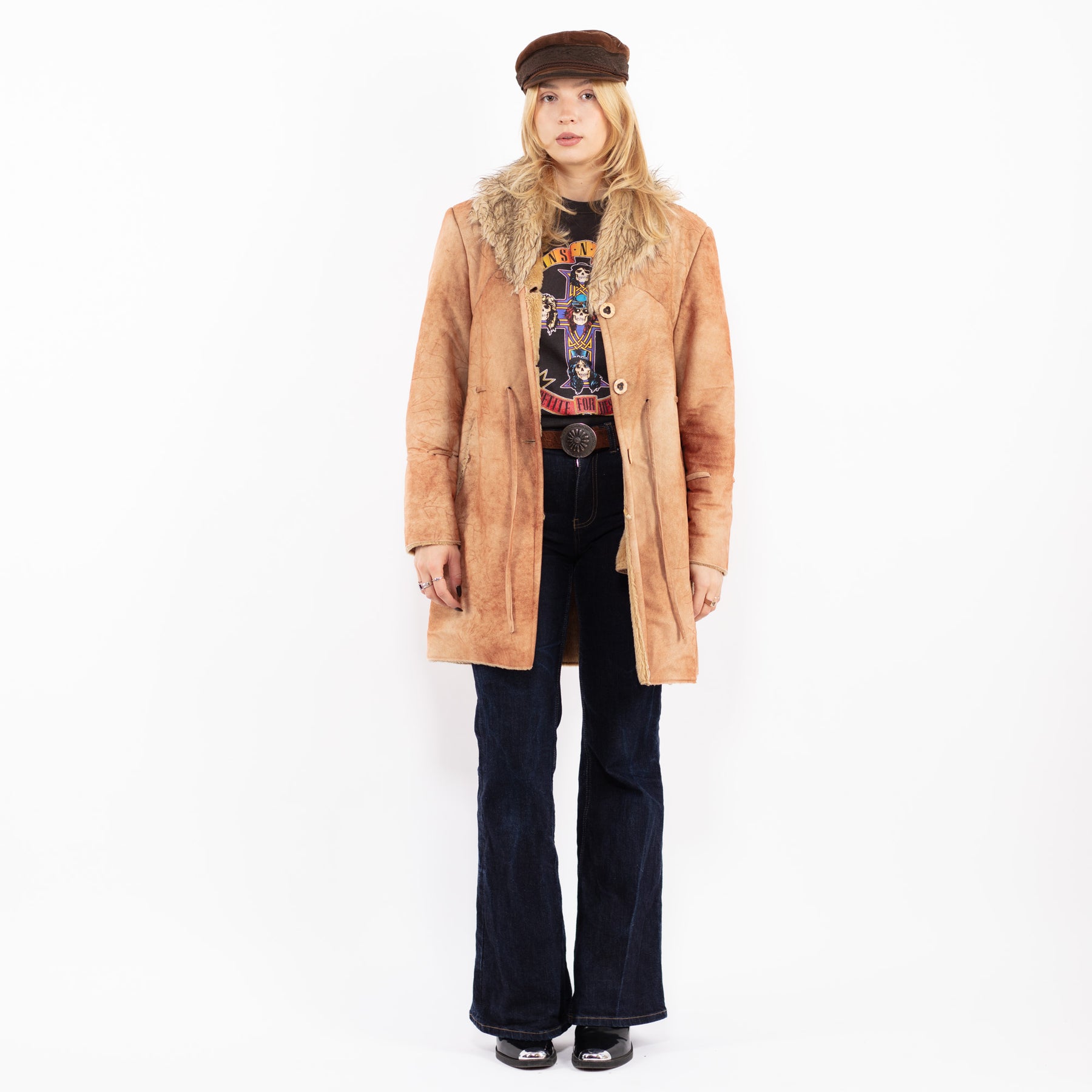 Vintage 00's Penny Lane Faux Sheepskin Coat in Brown