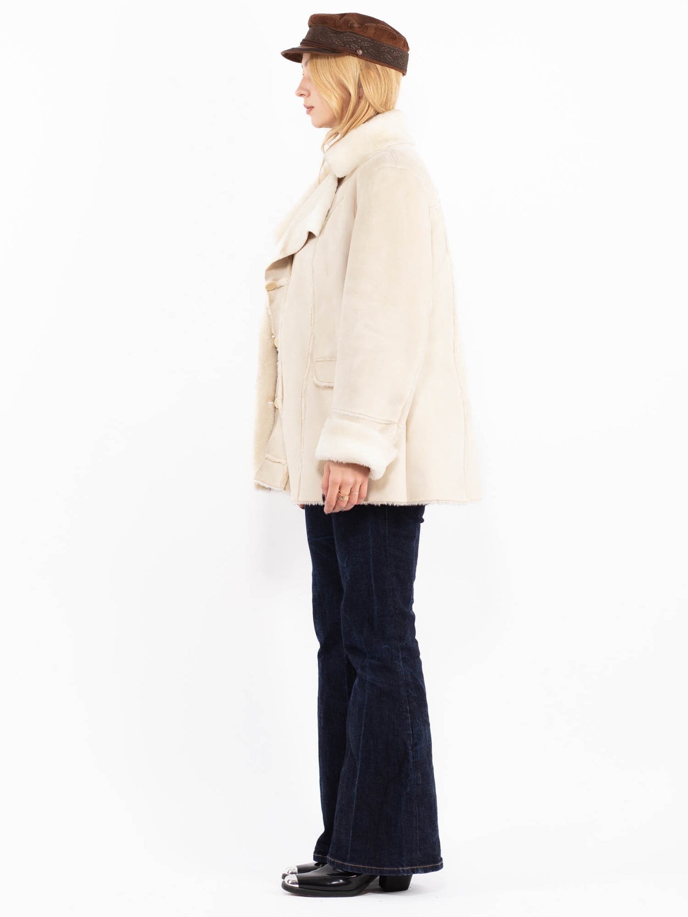 White Vintage 00's Women Faux Sheepskin Coat in White With Free Delivery