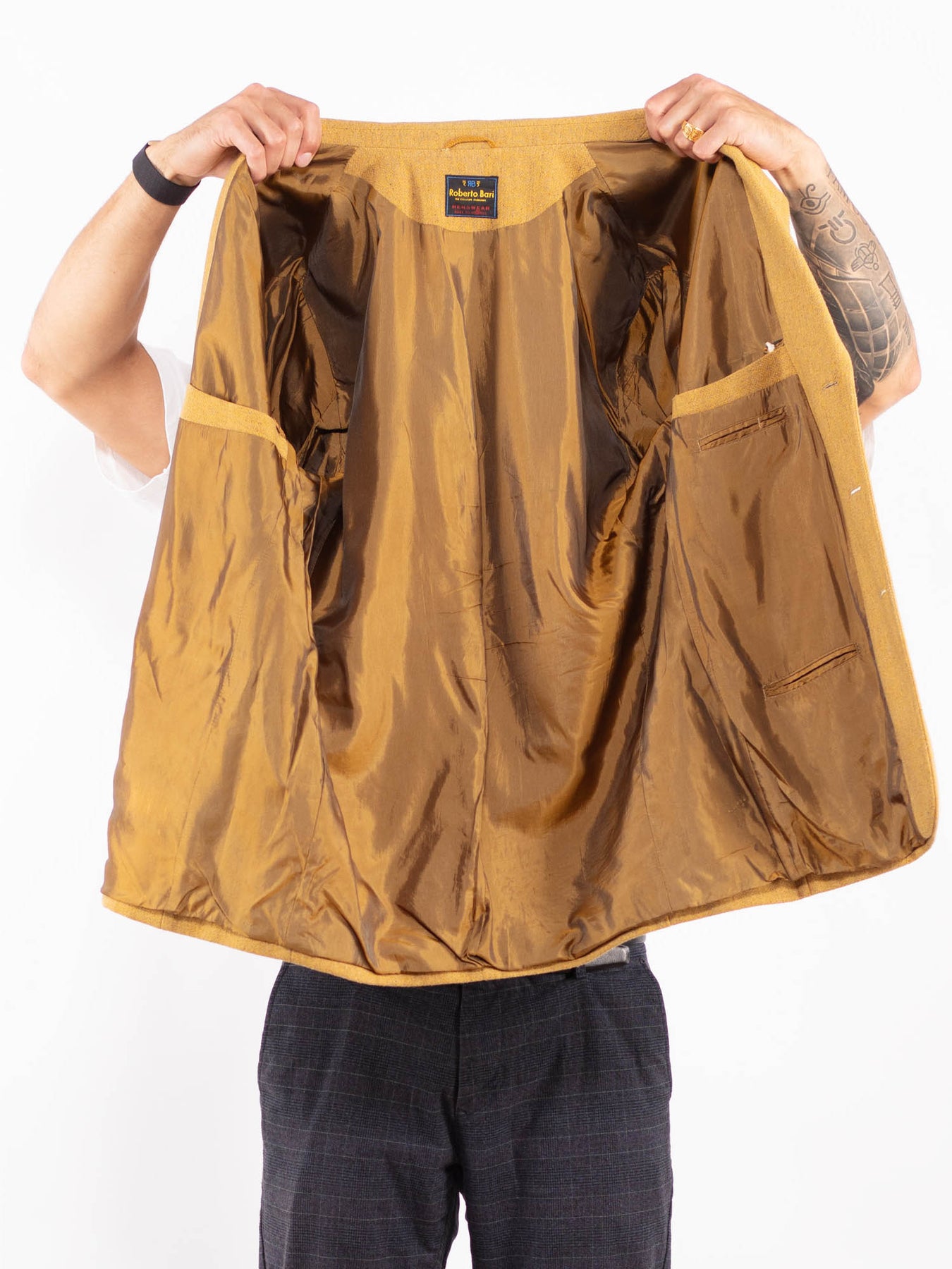 Vintage 70's Men Wool Blazer Jacket in Sand Yellow