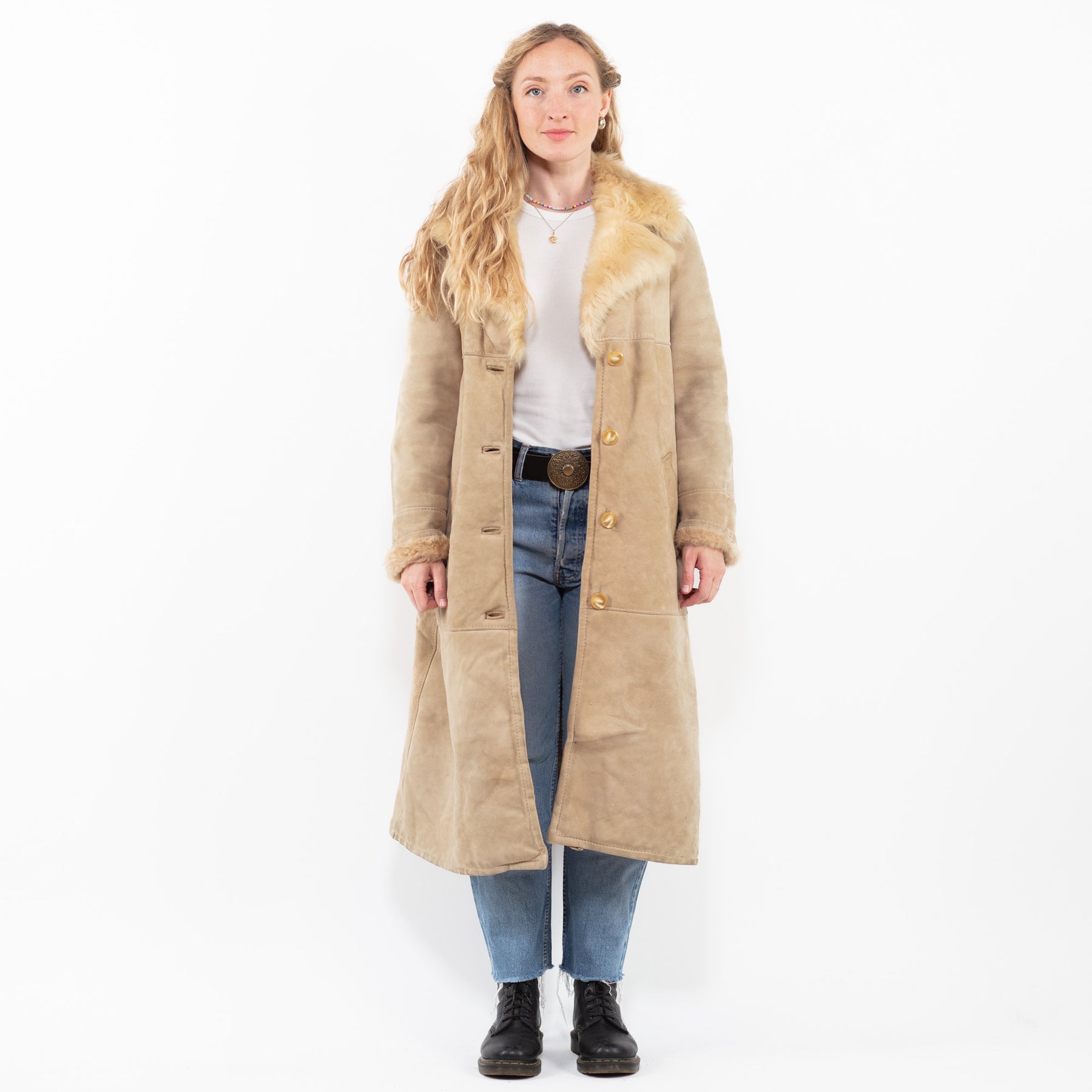Beige Vintage 70's Women Sheepskin Coat in Beige With Free Delivery