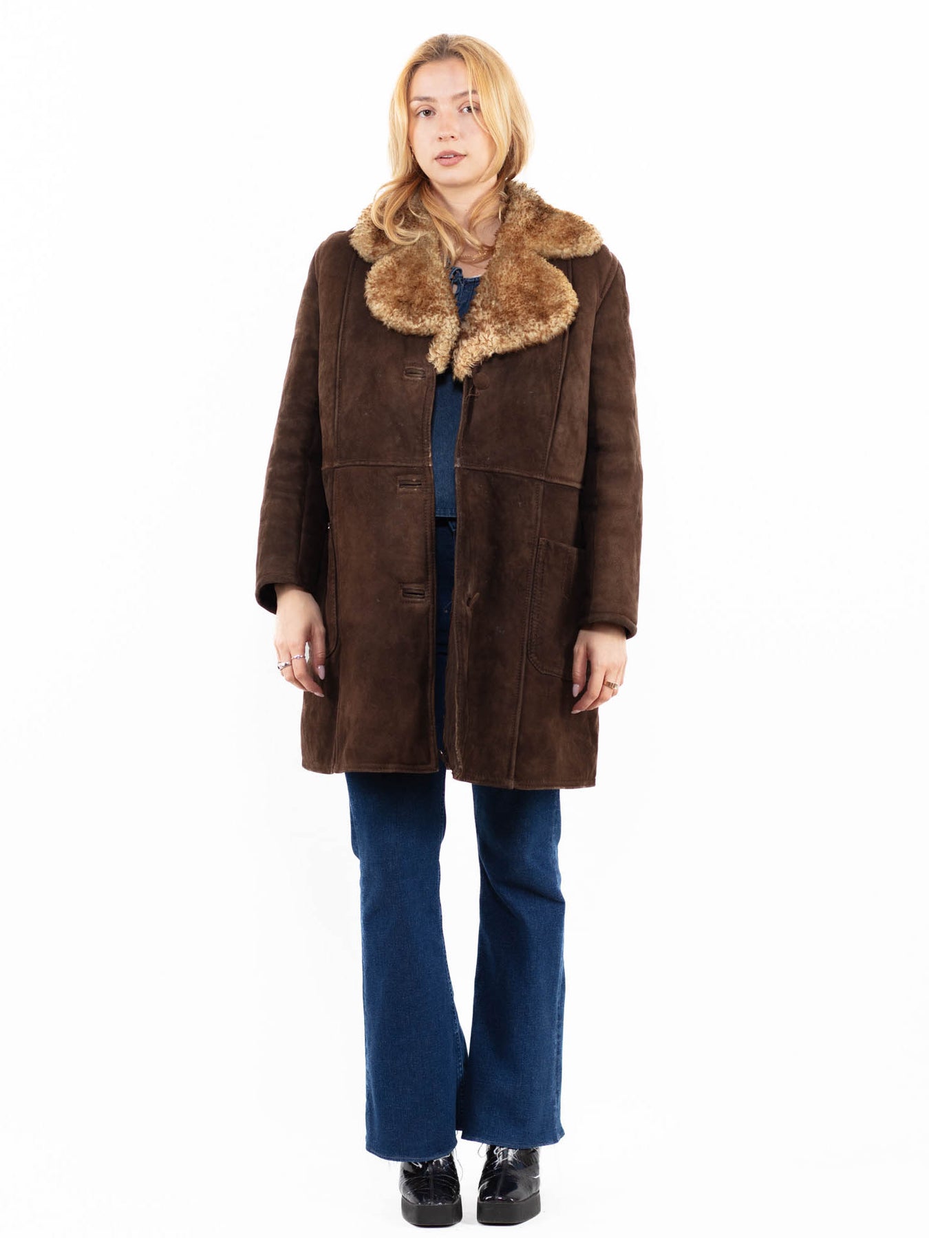 Brown Vintage 70's Women Sheepskin Coat in Brown With Free Delivery