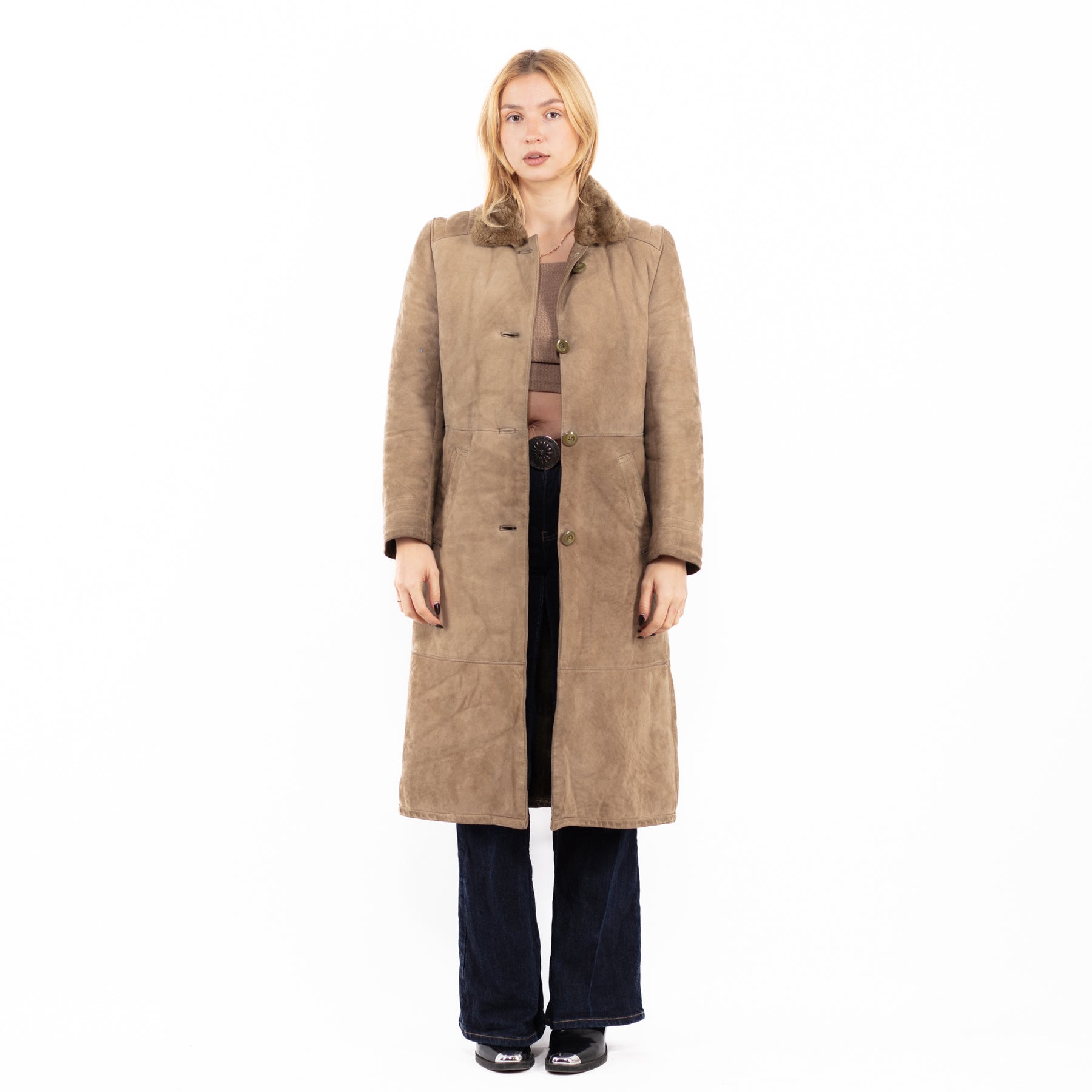 Vintage 70's Women Sheepskin Long Coat in Beige
