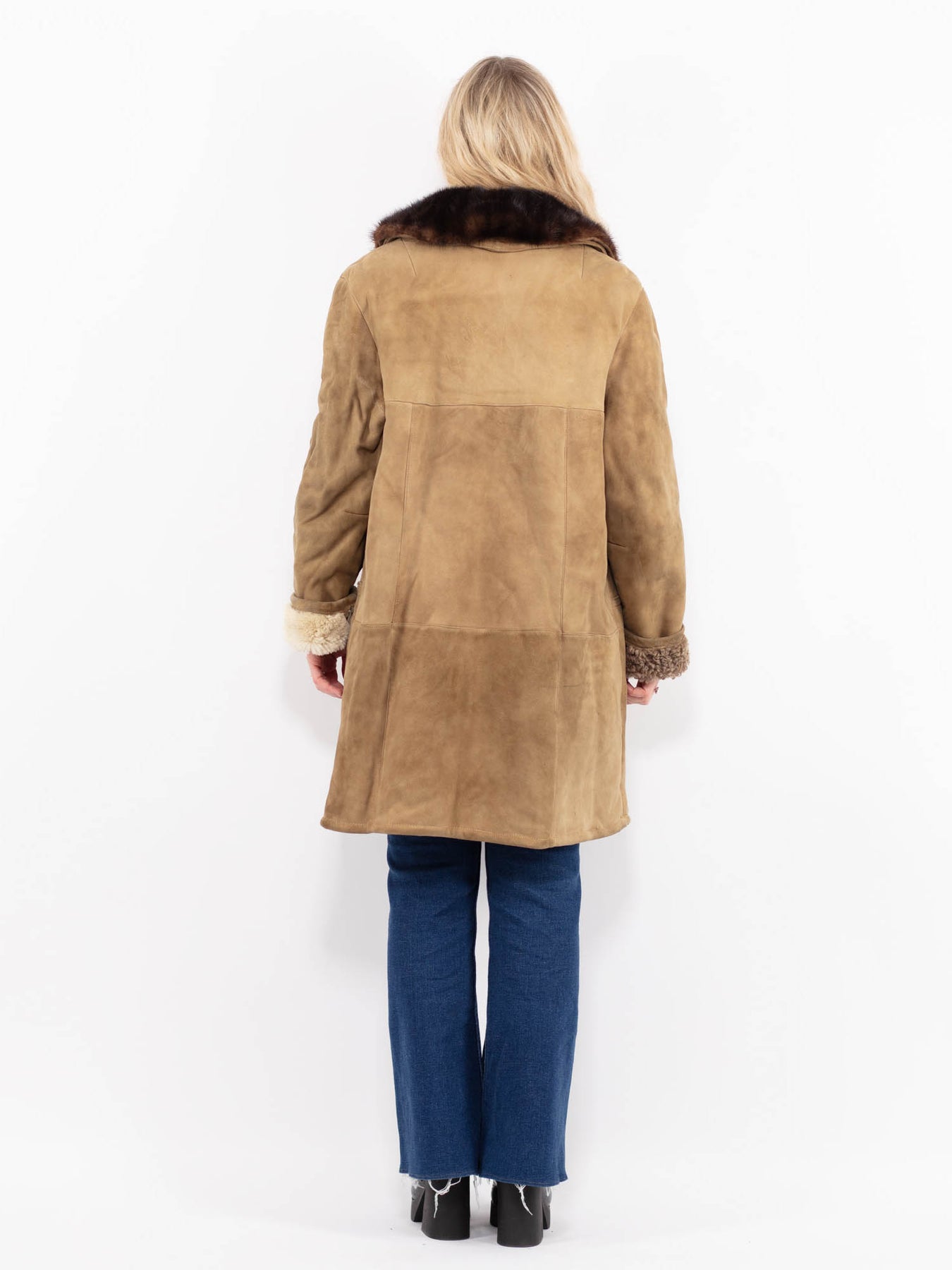 Beige Vintage 70's Women Sheepskin Shearling Coat in Beige With Free Delivery