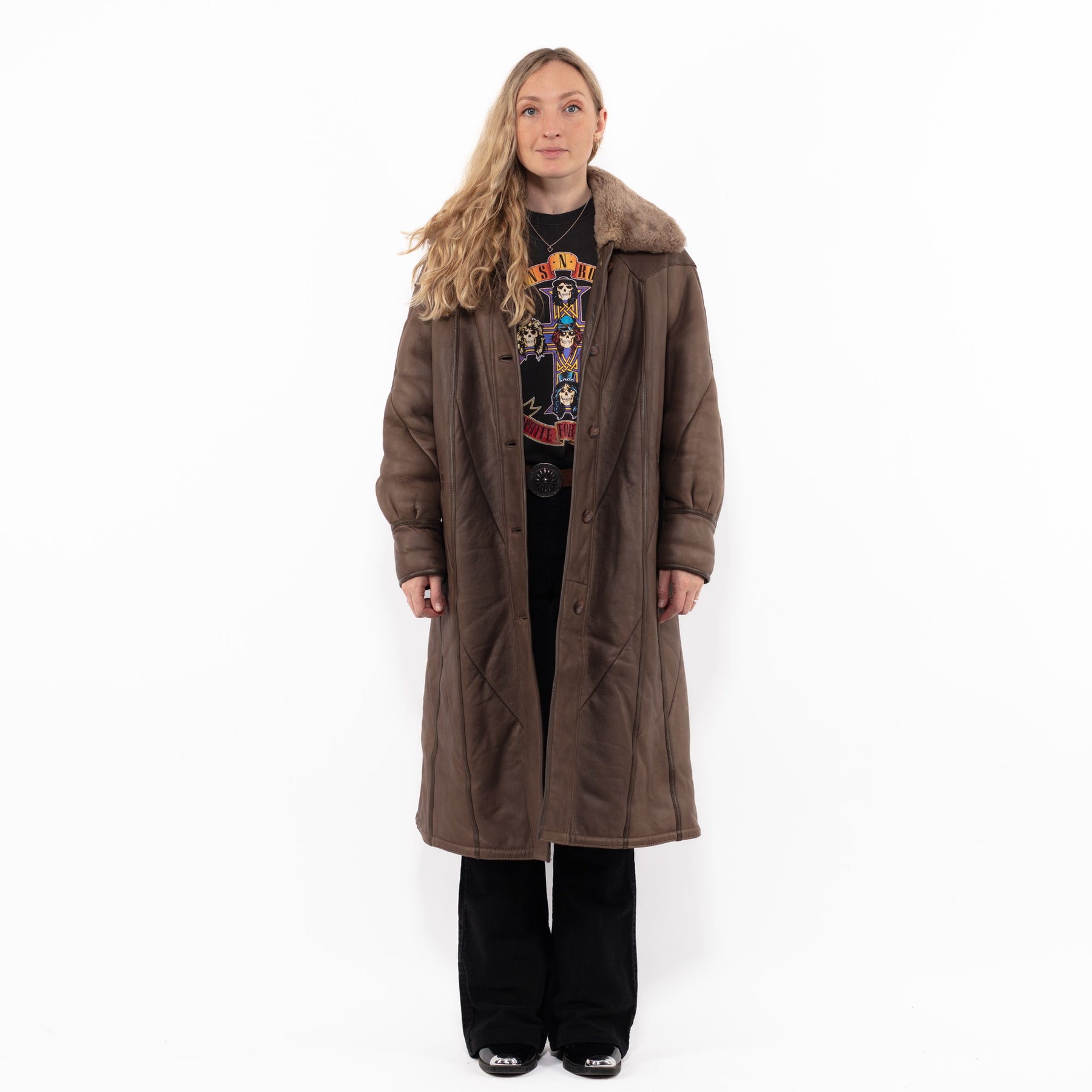 Brown Vintage 80's Women Sheepskin Long Coat in Brown With Free Delivery