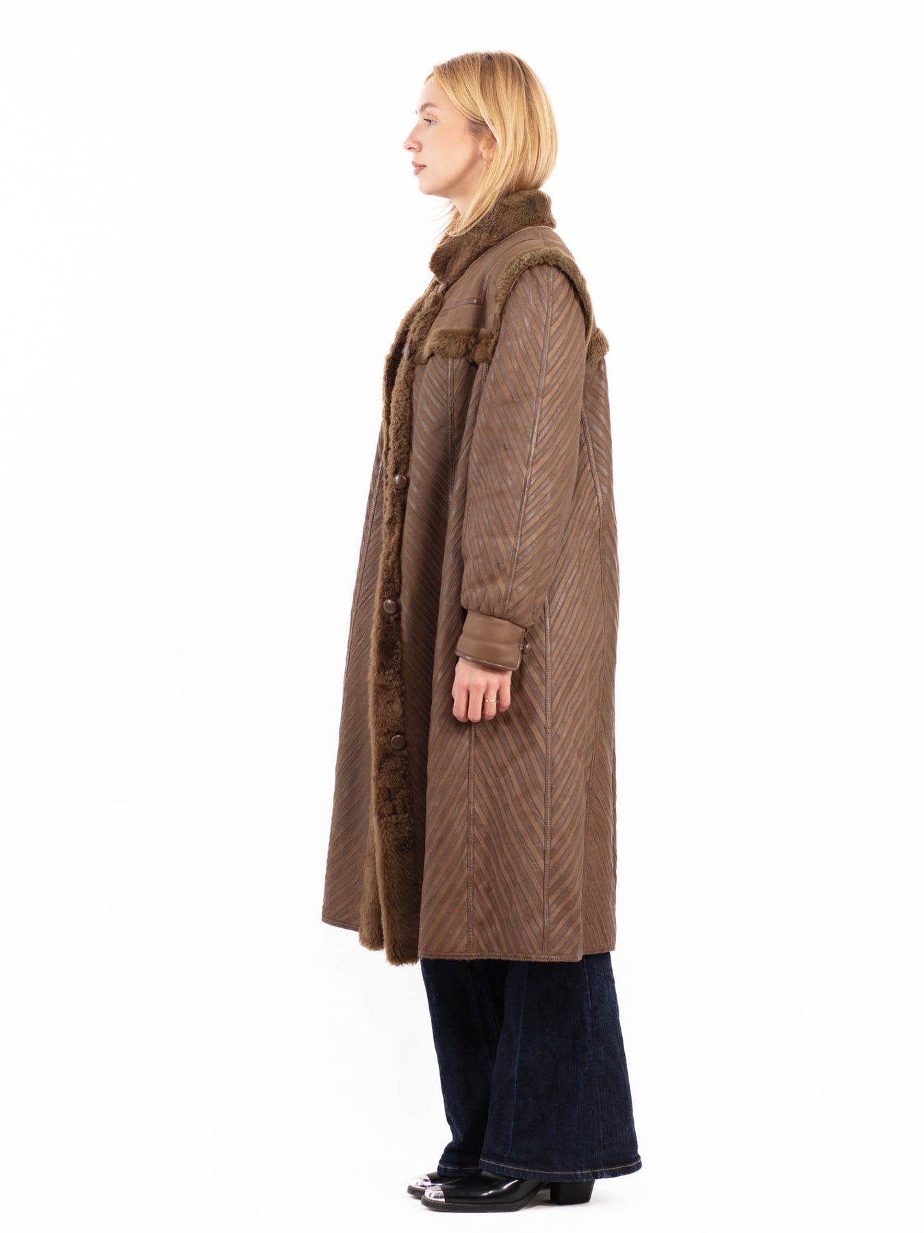 Vintage 80's Women Sheepskin Coat in Brown