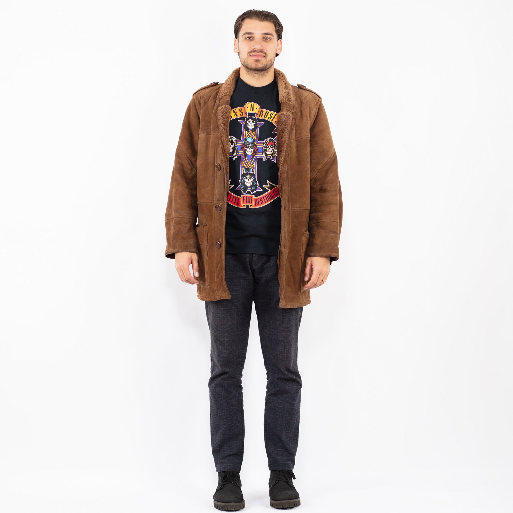 Vintage 90's Men Sheepskin Coat in Brown