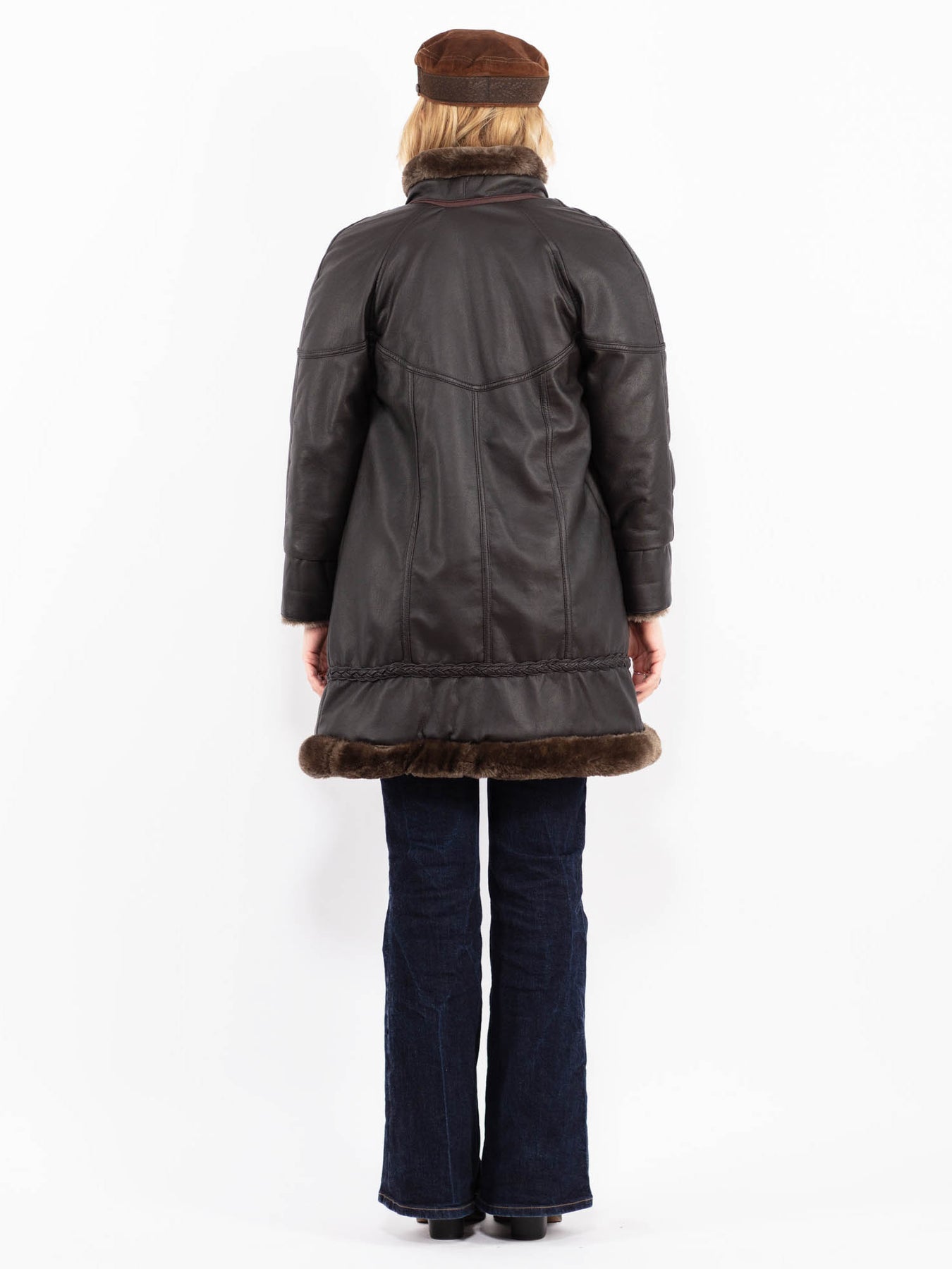 Vintage 90's Women Faux Leather Coat in Dark Brown