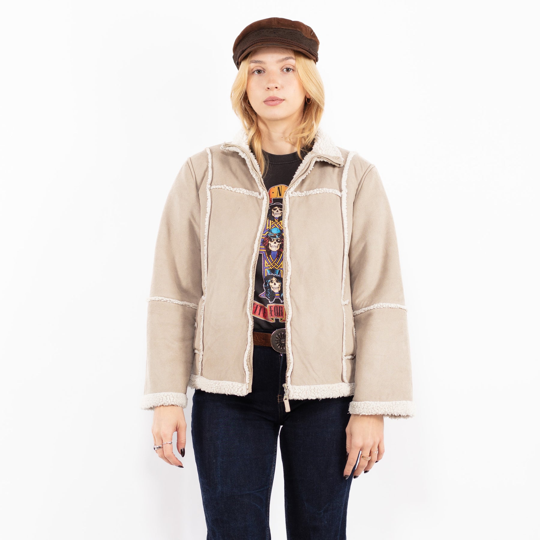 Vintage 00's Women Faux Sheepskin Jacket in Beige