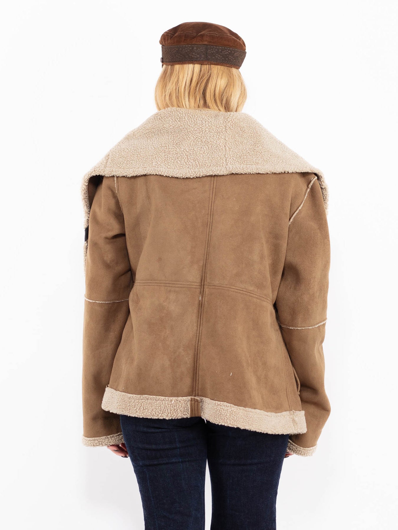 Vintage 90's Women Faux Shepskin Bomber Jacket in Beige