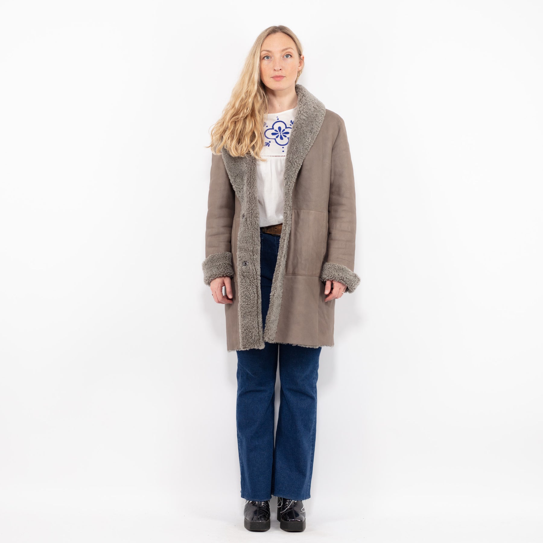 Gray Vintage 90's Women Reversible Sheepskin Coat in Gray With Free Delivery