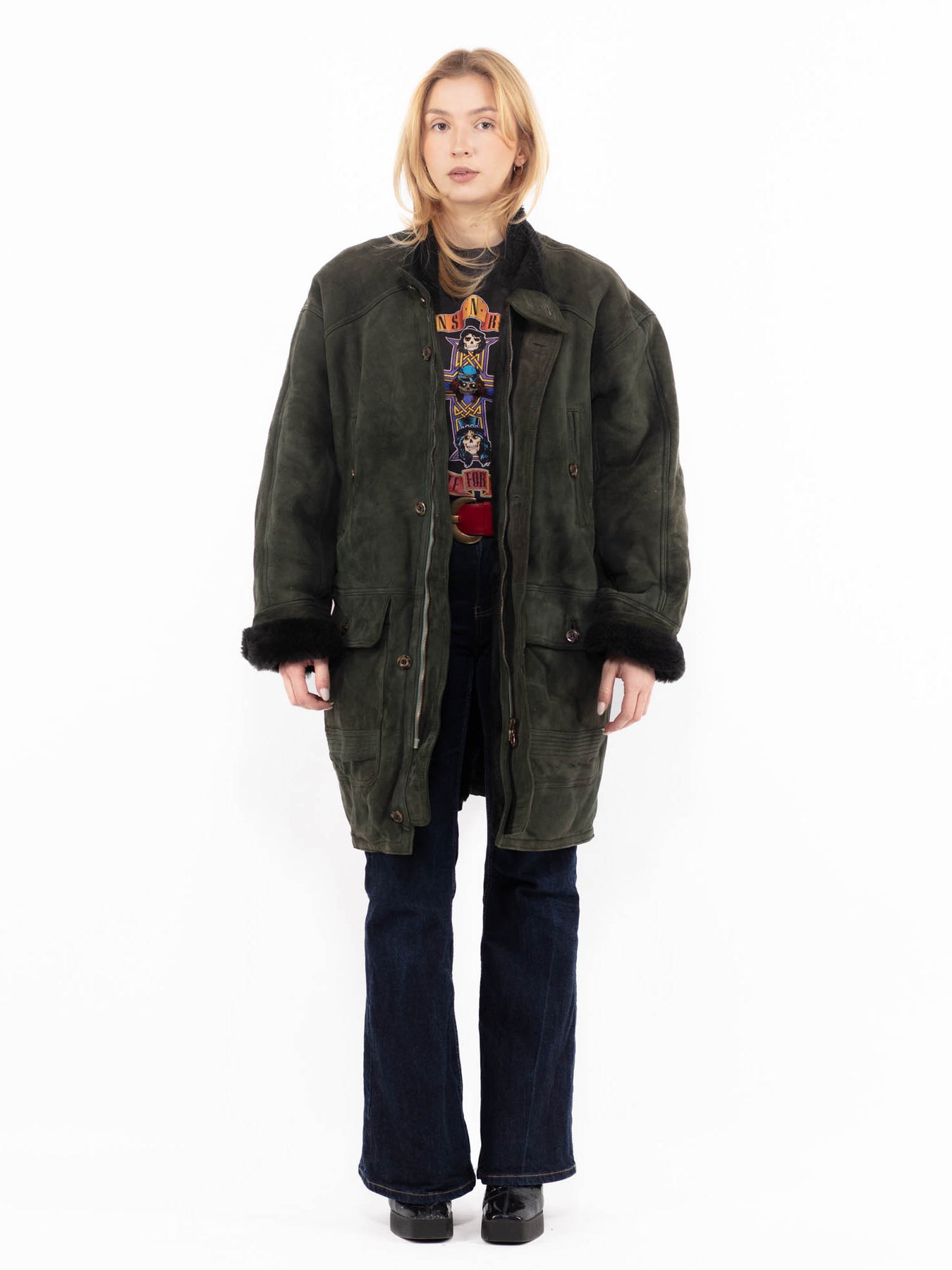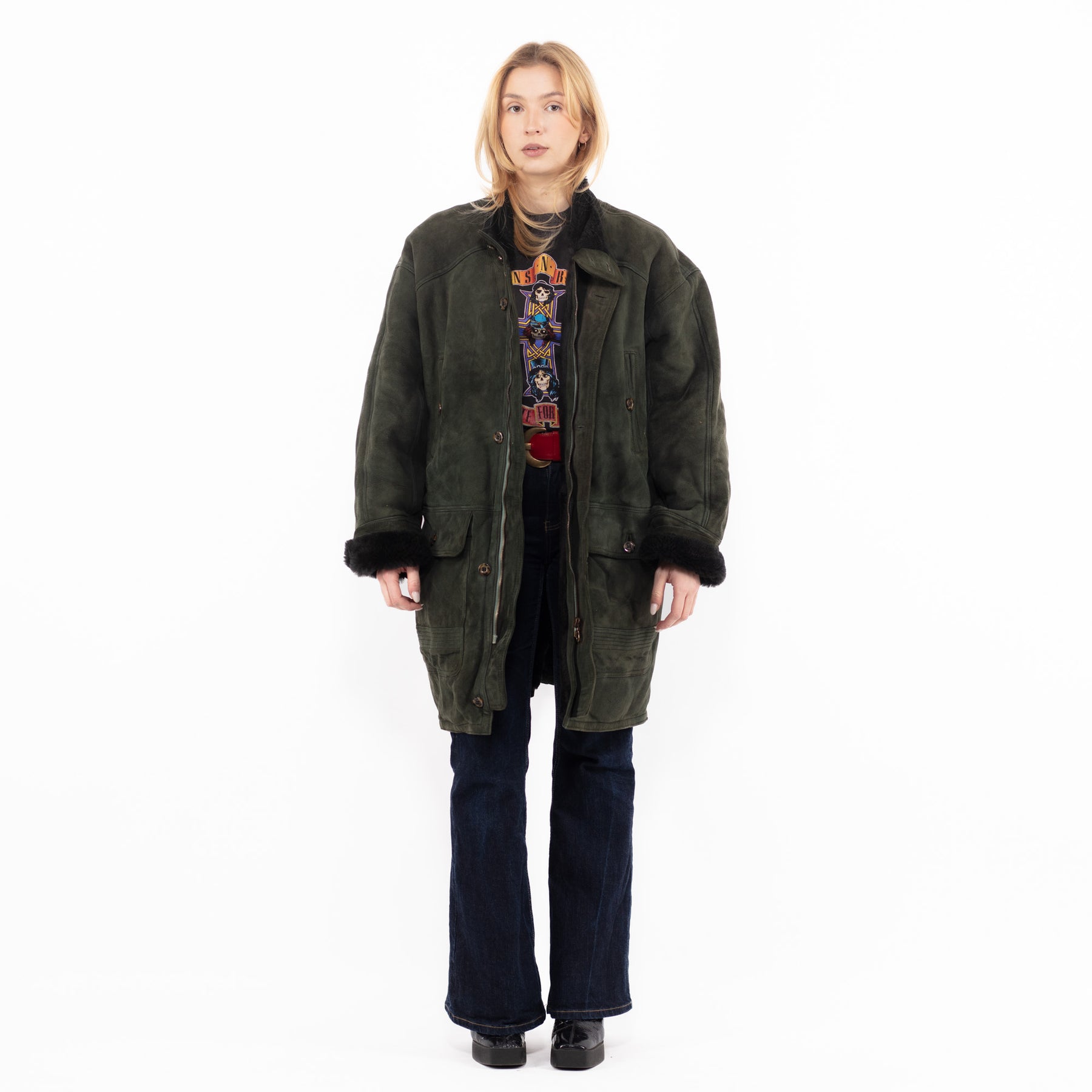 Green Vintage 90's Women Sheepskin Coat in Green With Free Delivery