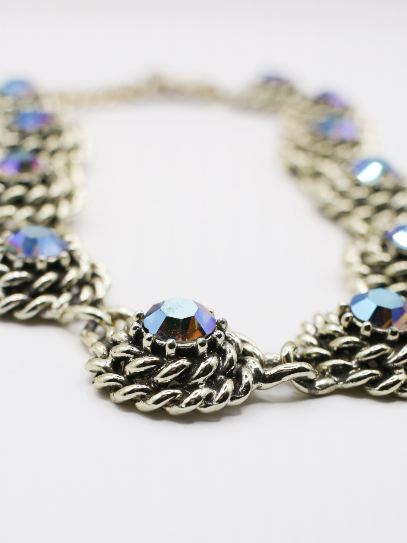 What it is: Kas tas ir: Vintage Silver Tone Rope Link Necklace With Aurora Borealis Crystals