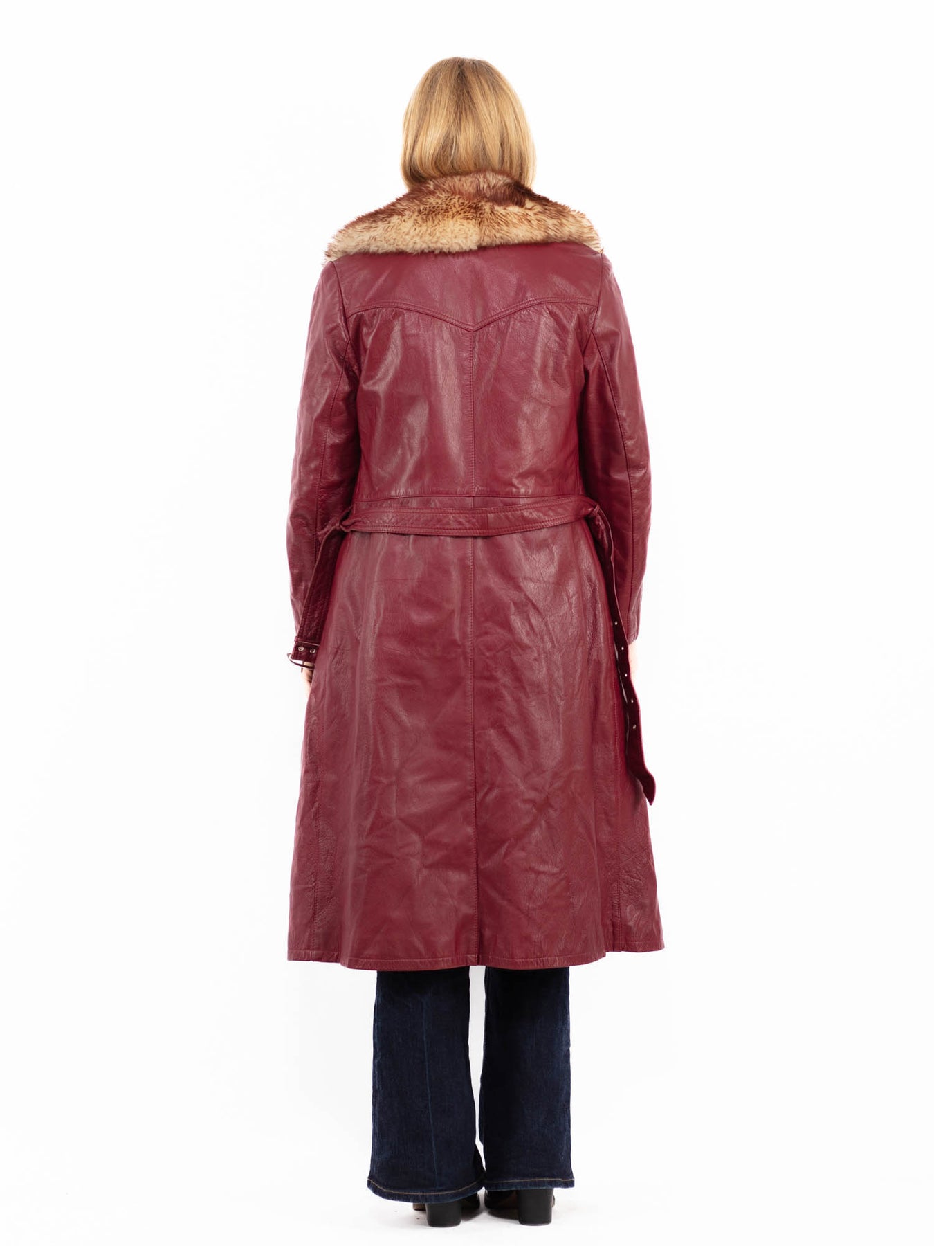 Red Vintage 70's Penny Lane Leather Coat in Burgundy Red With Free Delivery