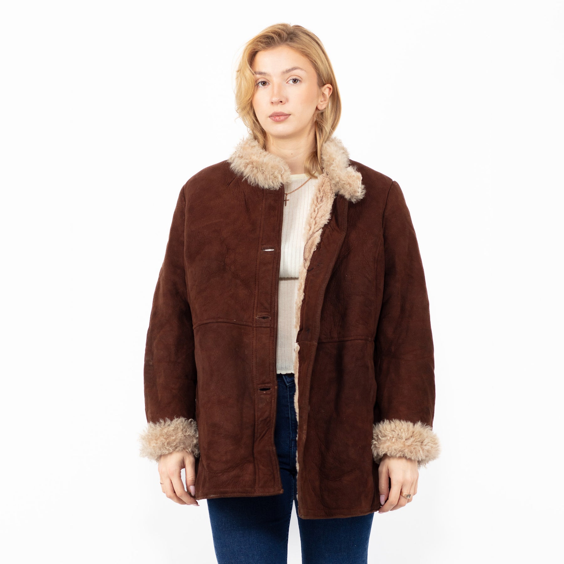 Brown Vintage 70's Women Sheepskin Coat in Brown With Free Delivery