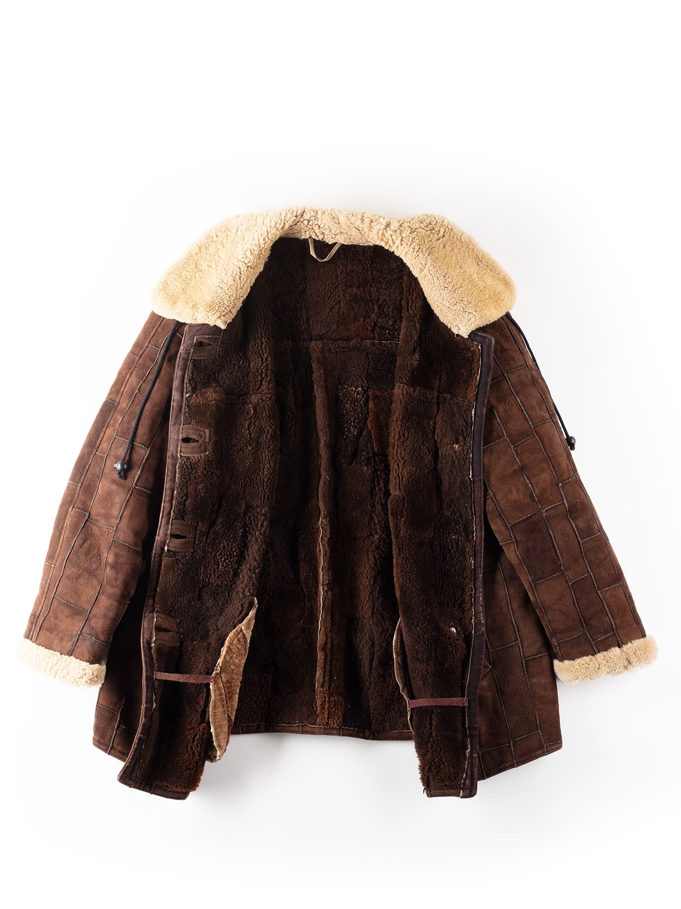 What it is: Kas tas ir: Vintage 80's Women Patchwork Sheepskin Coat in Brown