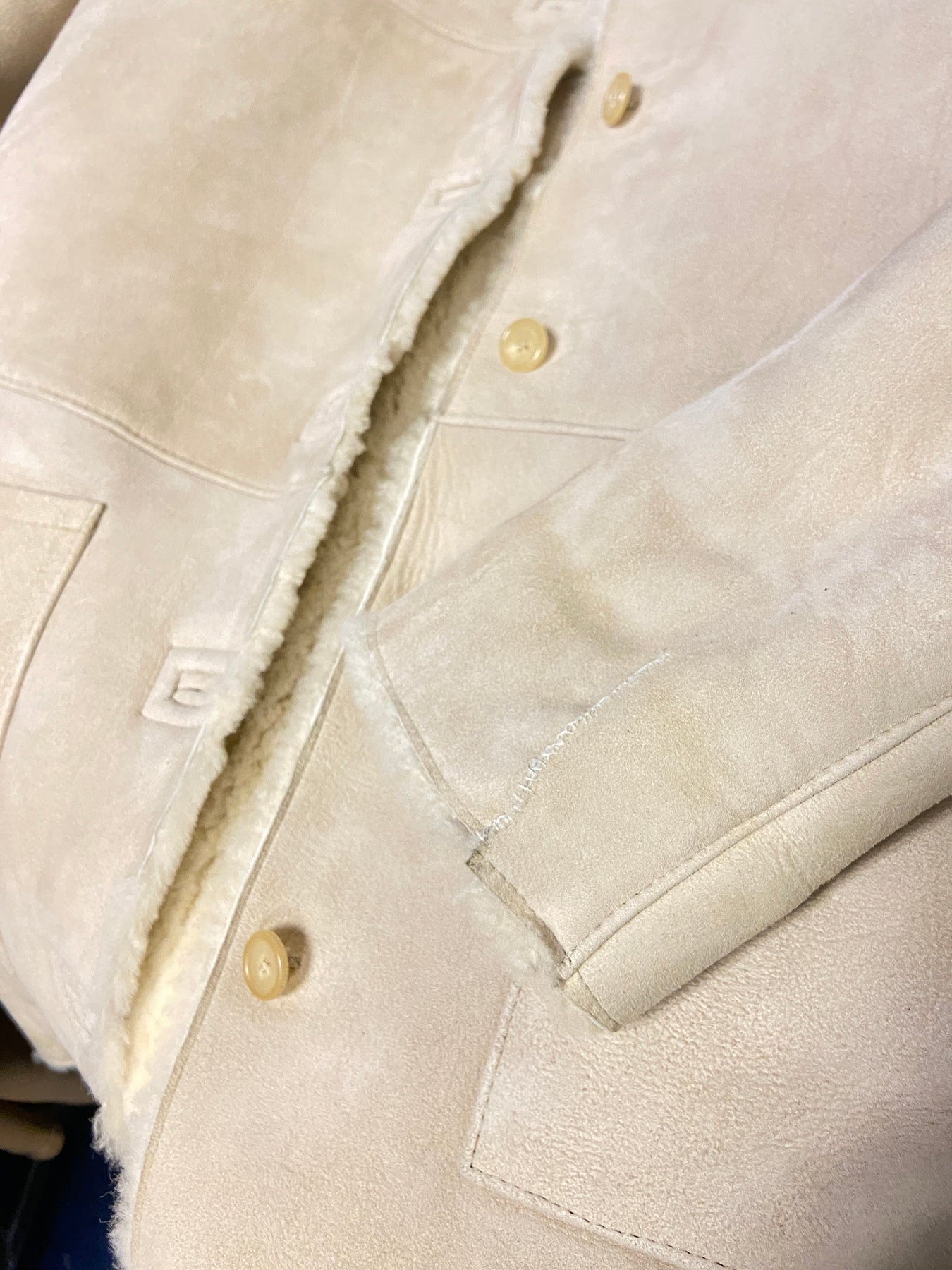 What it is: Kas tas ir: Vintage 90's Women Sheepskin Coat in Beige — genuine sheepskin (shearling), one-of-a-kind vintage. īsta aitāda (shearling), unikāls vintage izstrādājums.