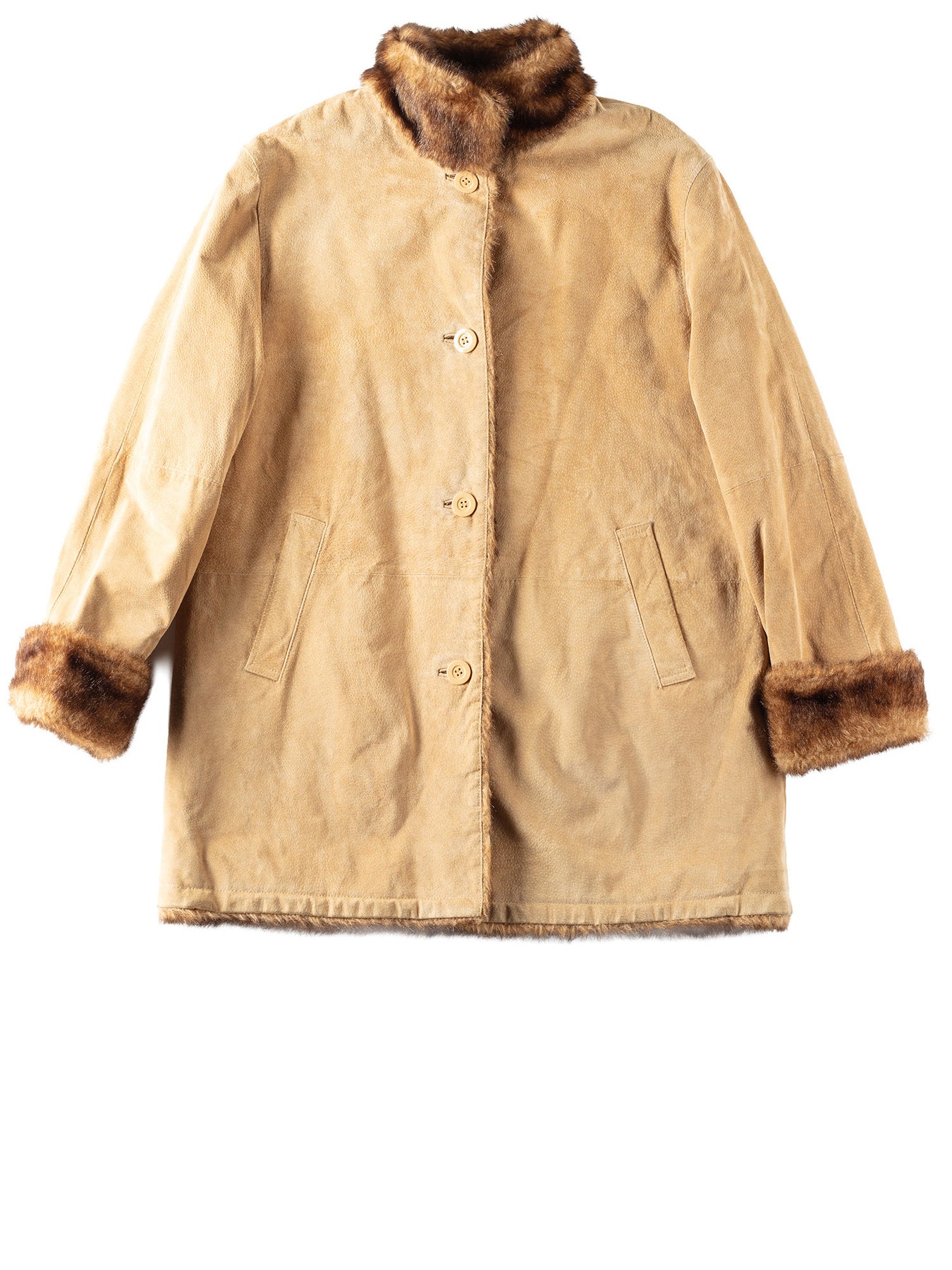 Vintage 90's Women Suede Coat in Beige With Free Delivery. Faux sheepskin lining.