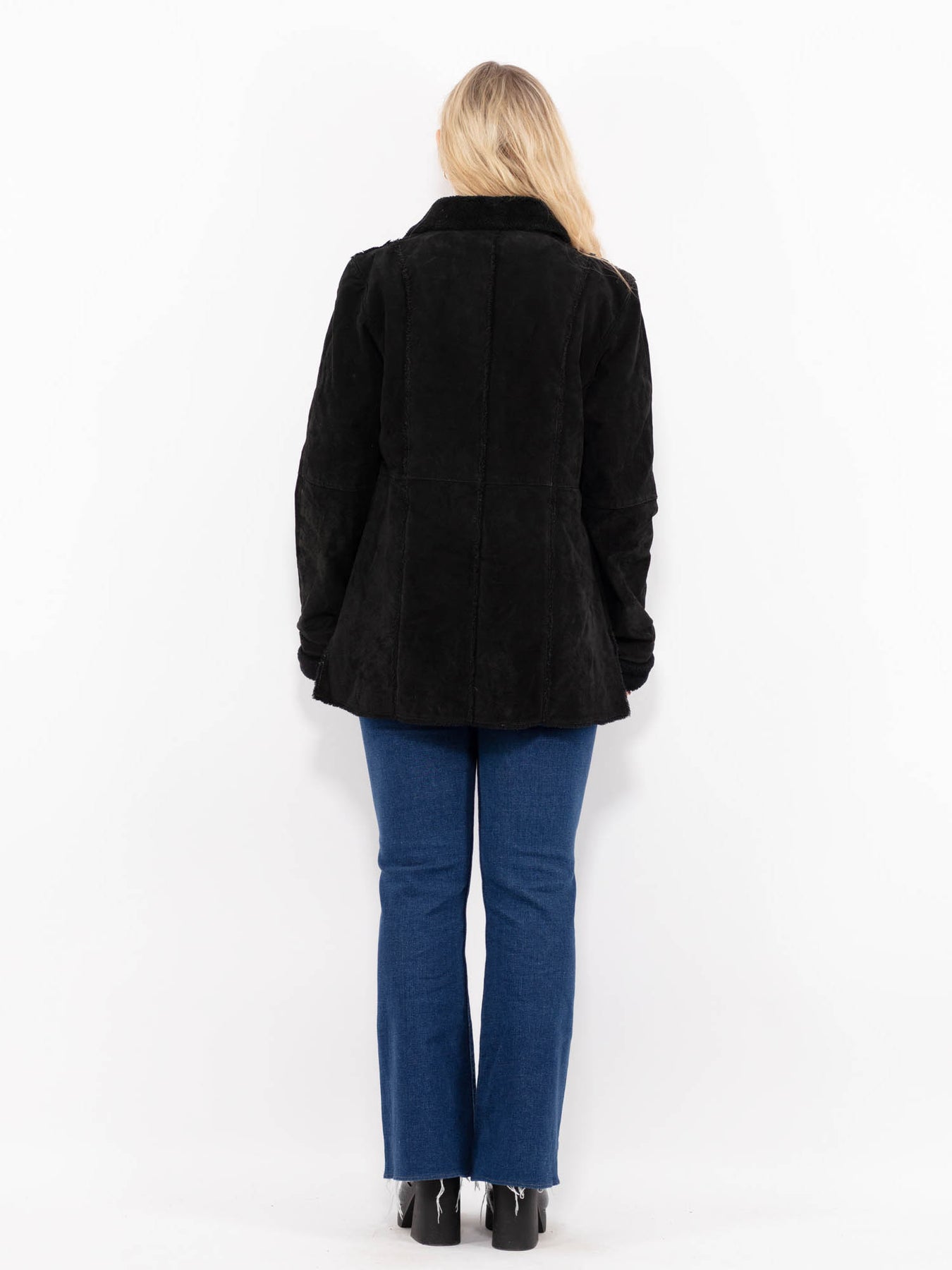 Vintage 90's Women Suede Sherpa Coat in BlackA1065