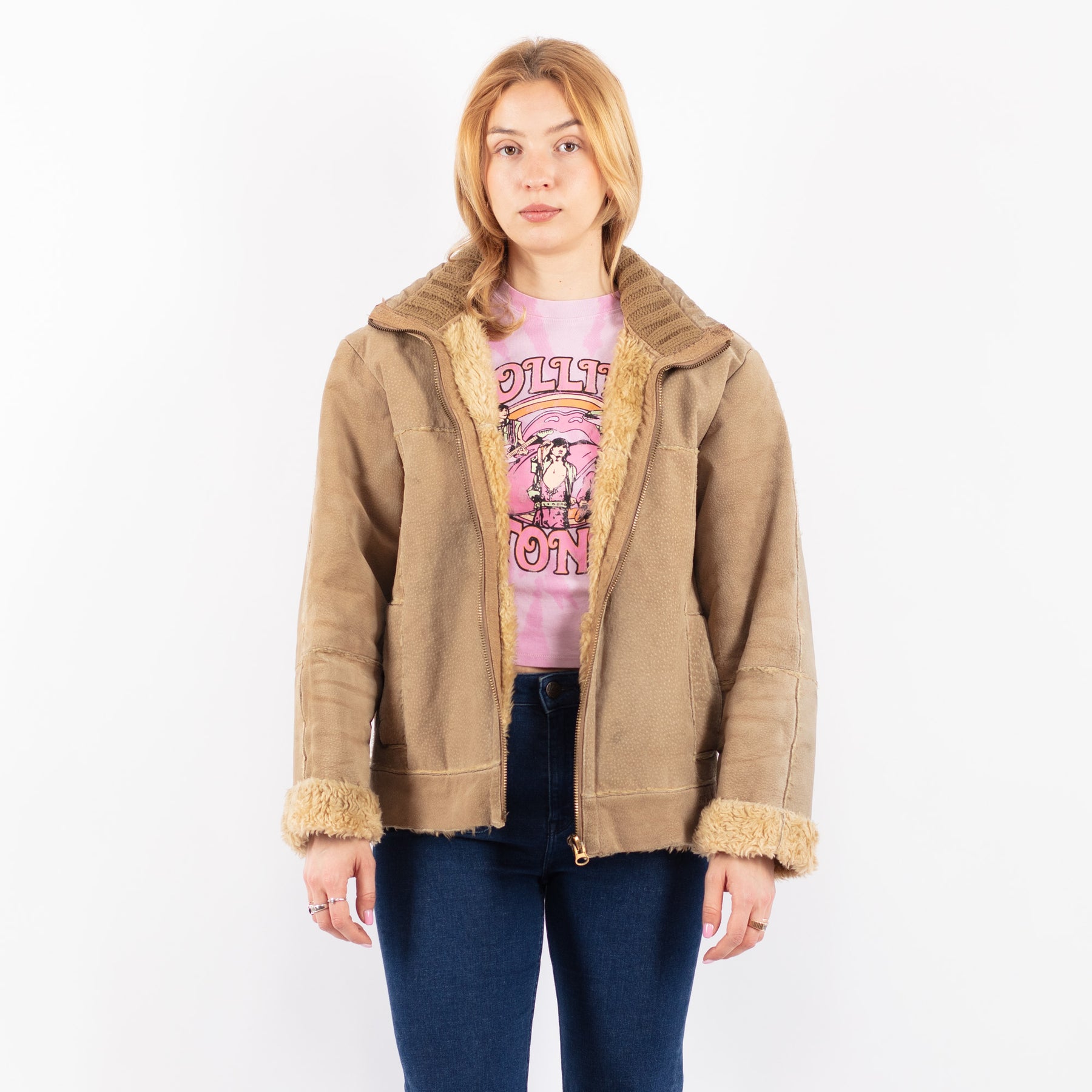 Beige Vintage 90's Women Suede Sherpa Jacket in Beige With Free Delivery