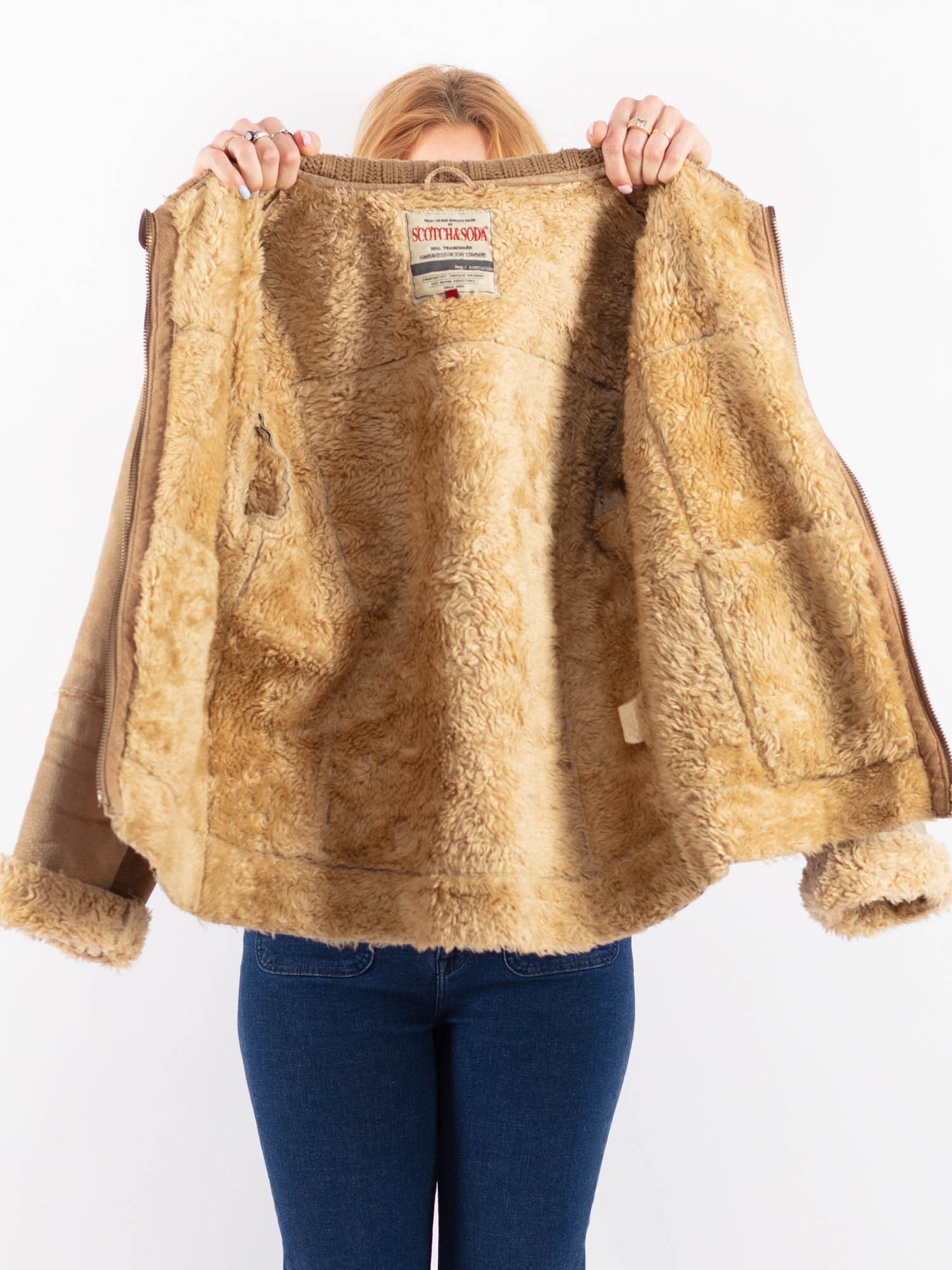 Vintage 90's Women Suede Sherpa Jacket in Beige