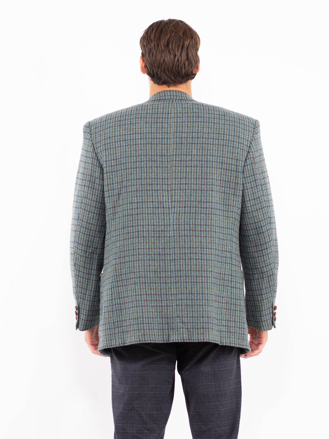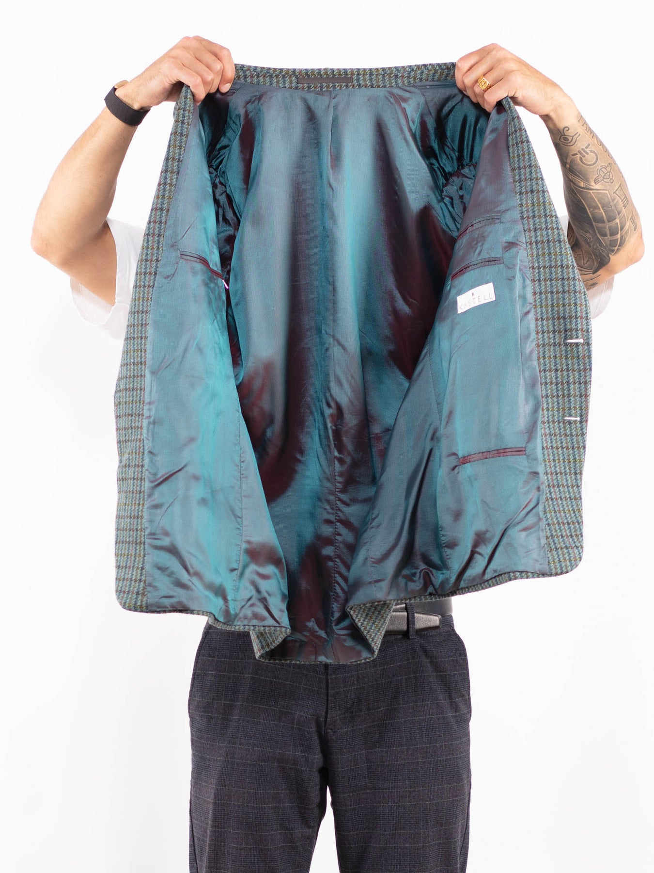 Vintage 70's Men Cashmere Wool Blend Blazer Jacket in Blue