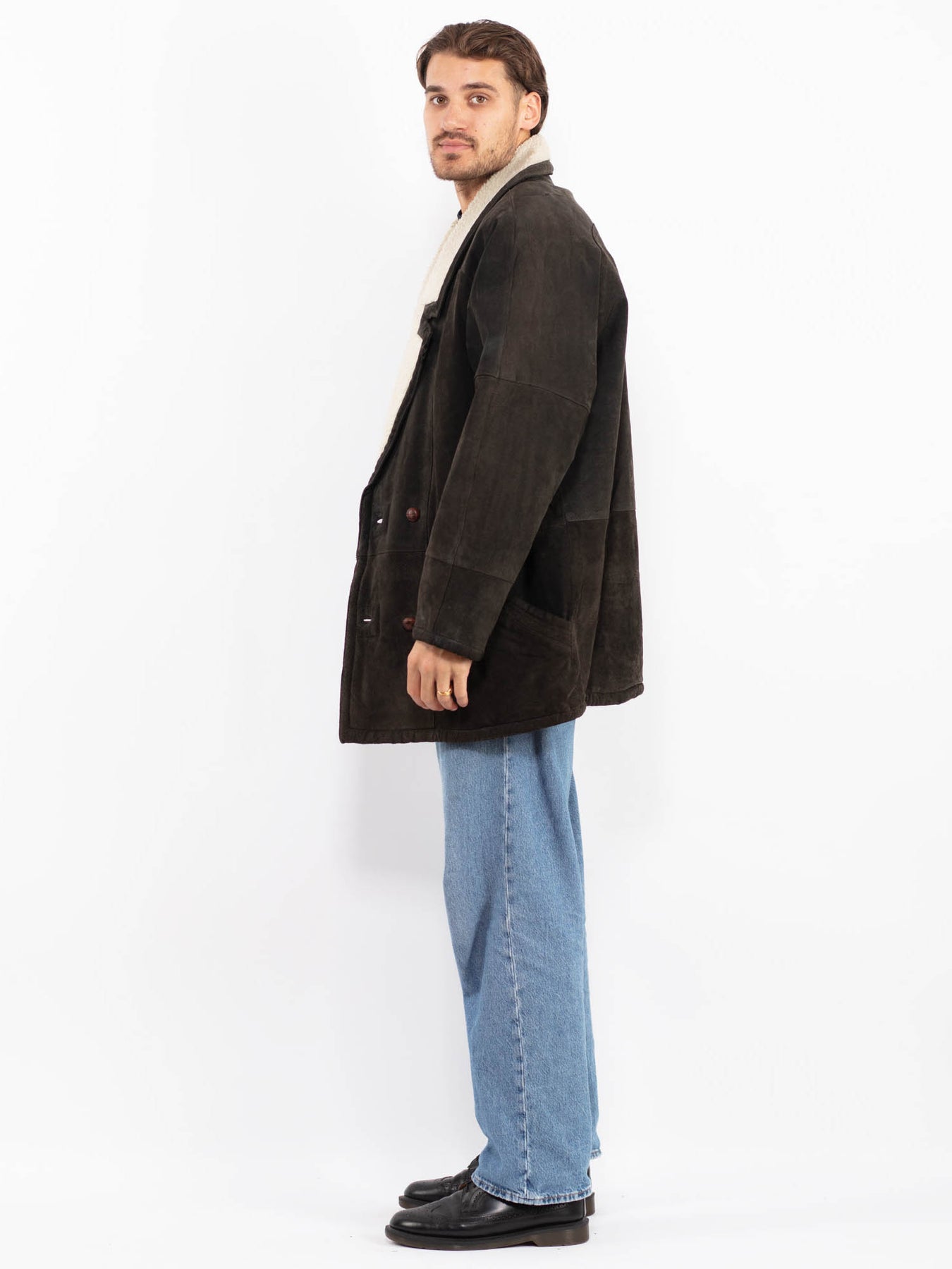 Brown Vintage 90's Men Suede Sherpa Coat in Brown Suede With Free Delivery