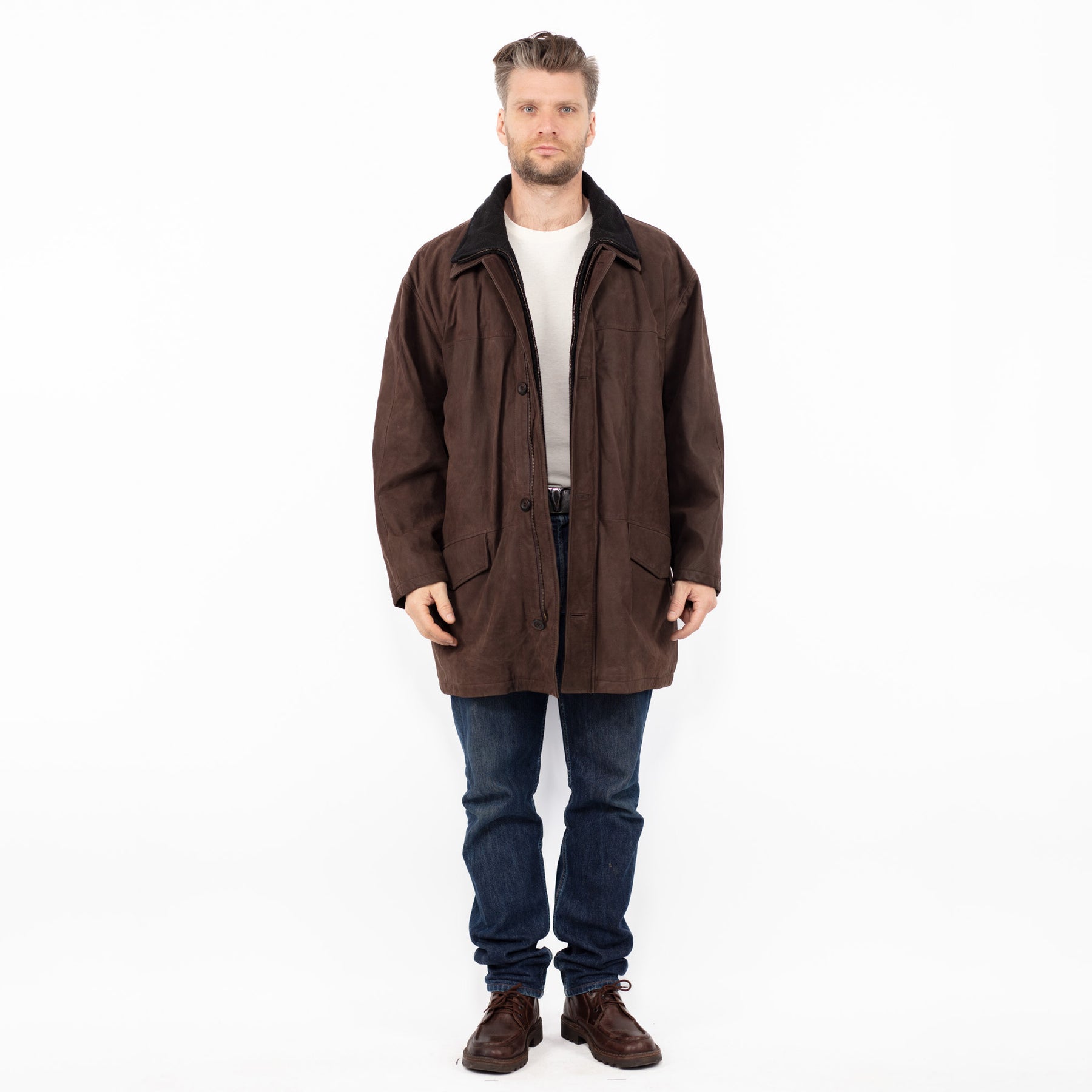 Brown Vintage 90's Men Leather Coat in Brown Leather With Free Delivery