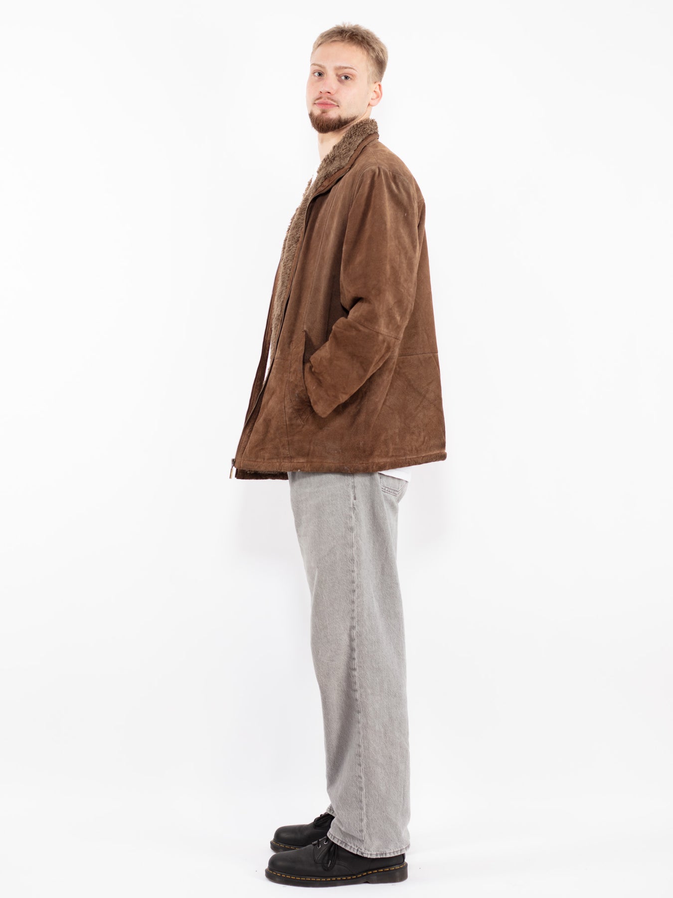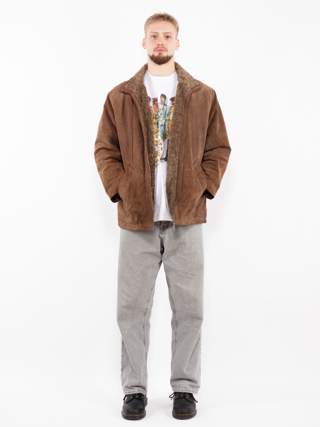 Vintage 90's Men Suede Sherpa Jacket in Brown