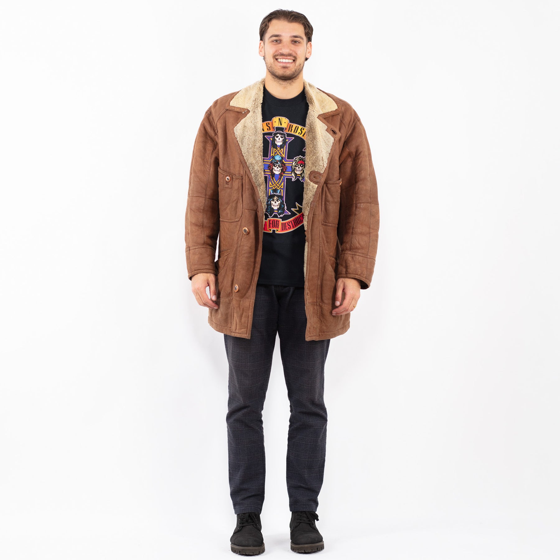 Brown Vintage 90's Men Sheepskin Coat in Brown Sheepskin With Free Delivery