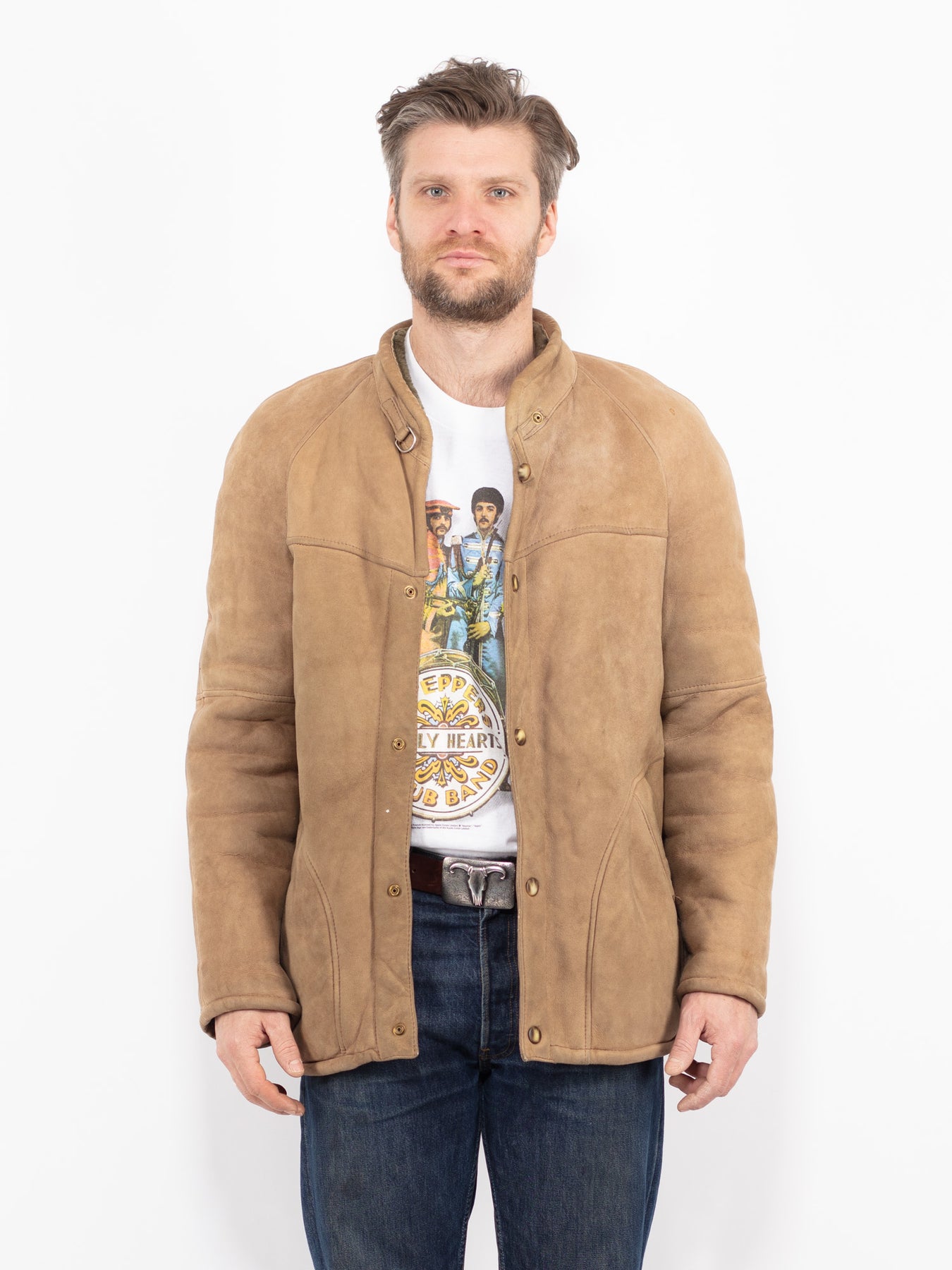 Beige Vintage 80's Men Sheepskin Jacket in Beige Sheepskin With Free Delivery