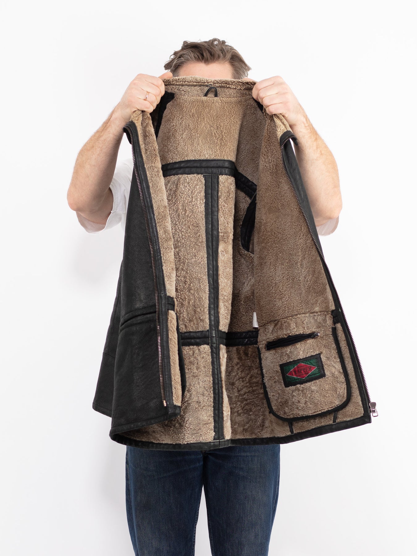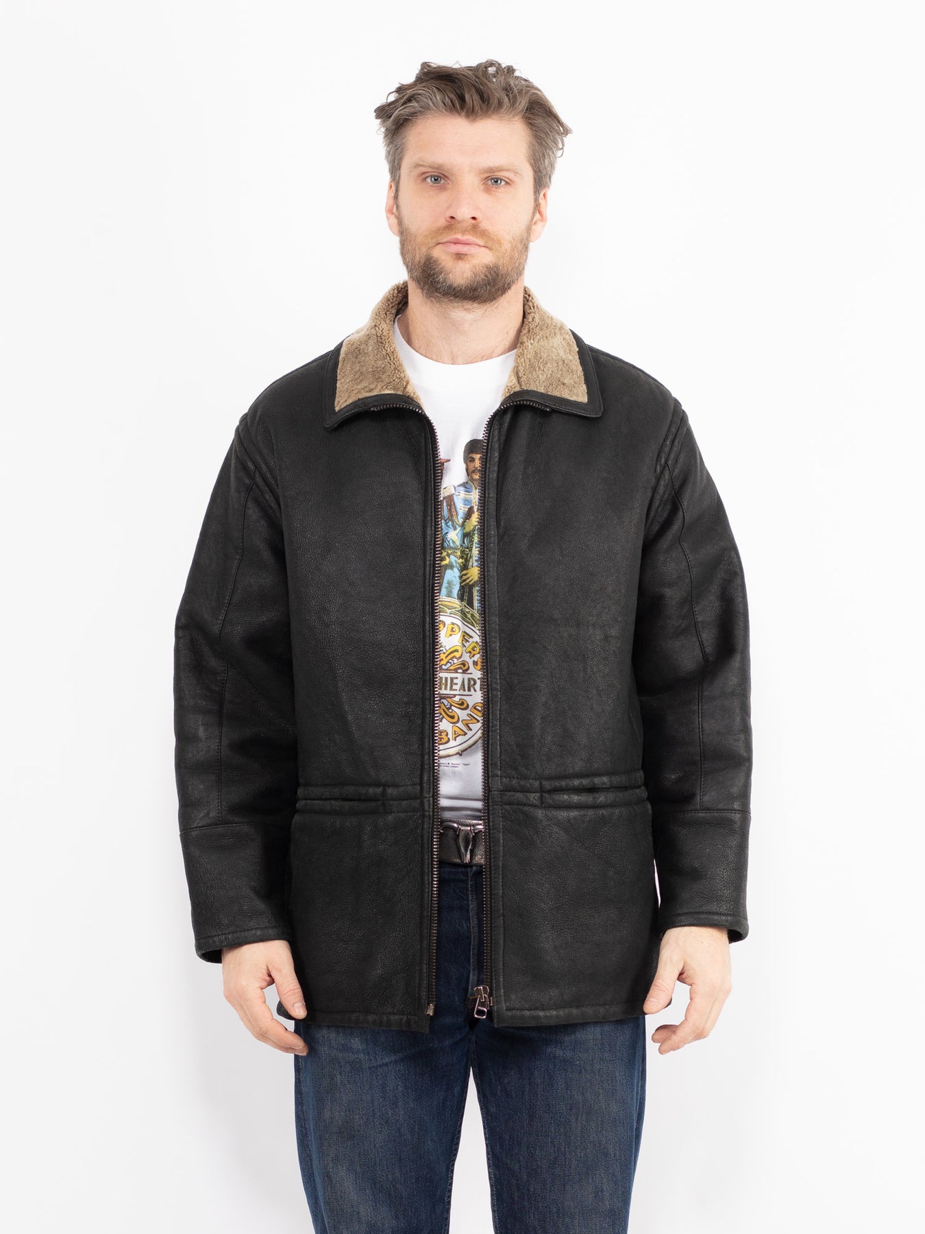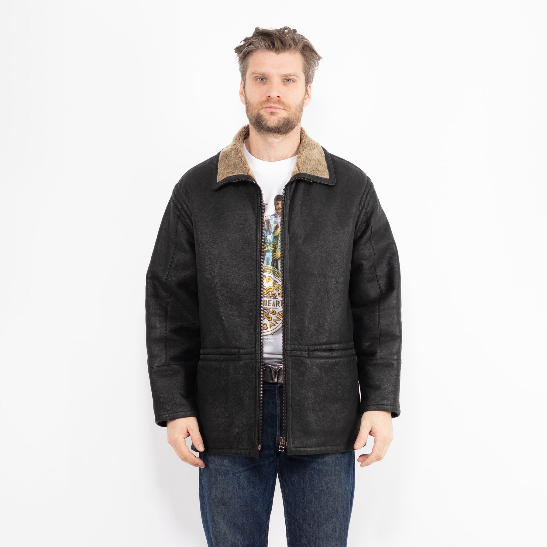 Black Vintage 90's Men Sheepskin Jacket in Black Sheepskin With Free Delivery