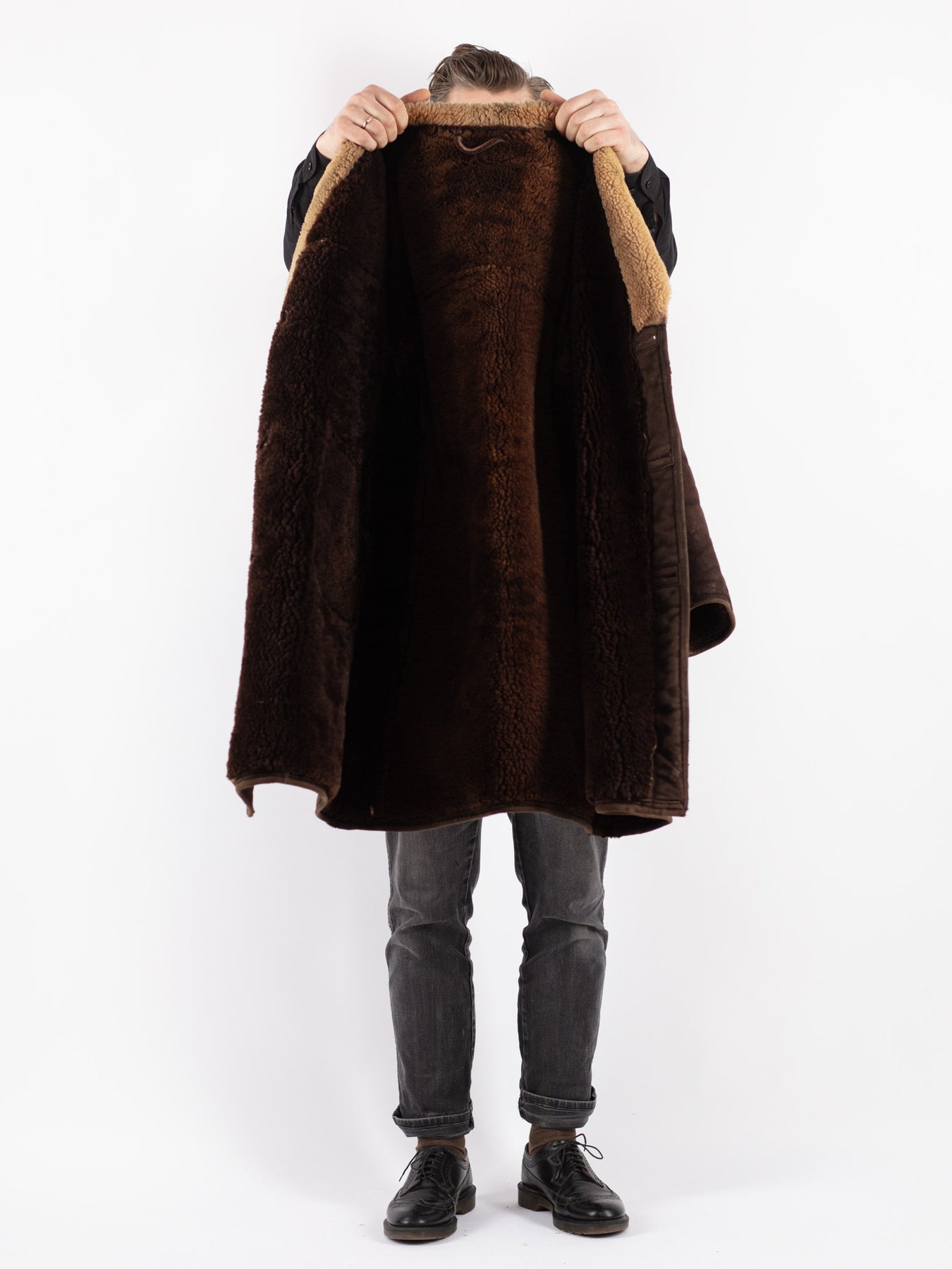 What it is: Kas tas ir: Vintage 70's Men Sheepskin Coat in Brown — genuine sheepskin (shearling), one-of-a-kind vintage. īsta aitāda (shearling), unikāls vintage izstrādājums.