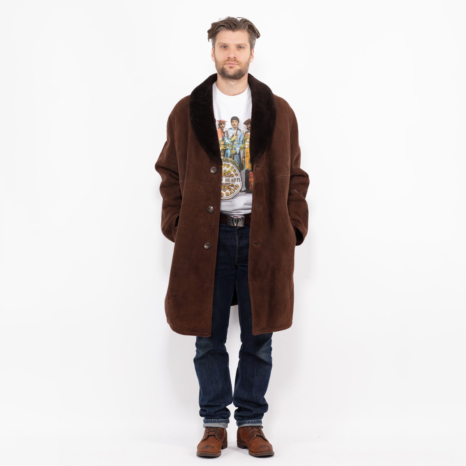 Brown Vintage 70's Men Sheepskin Coat in Brown Sheepskin With Free Delivery